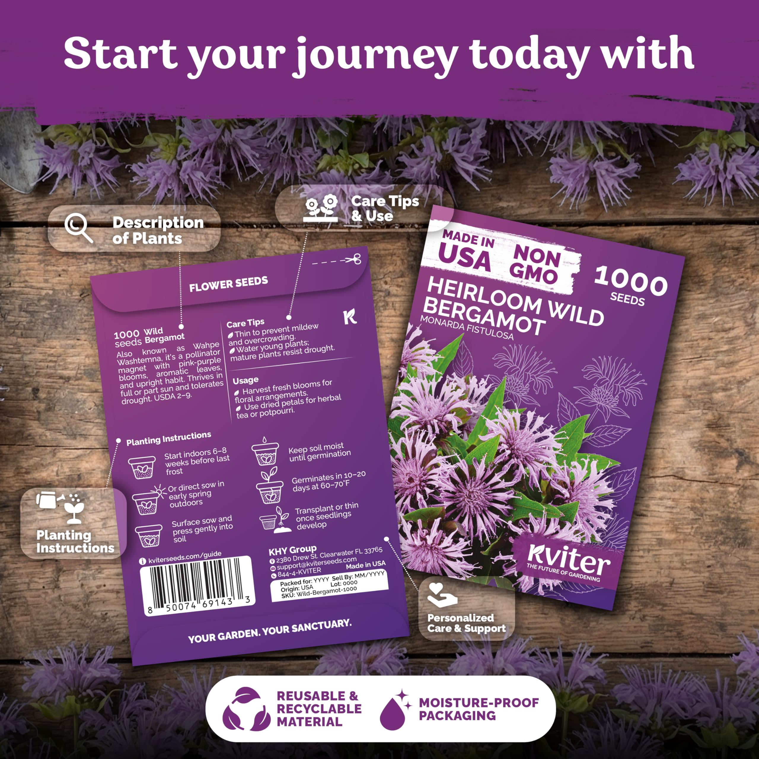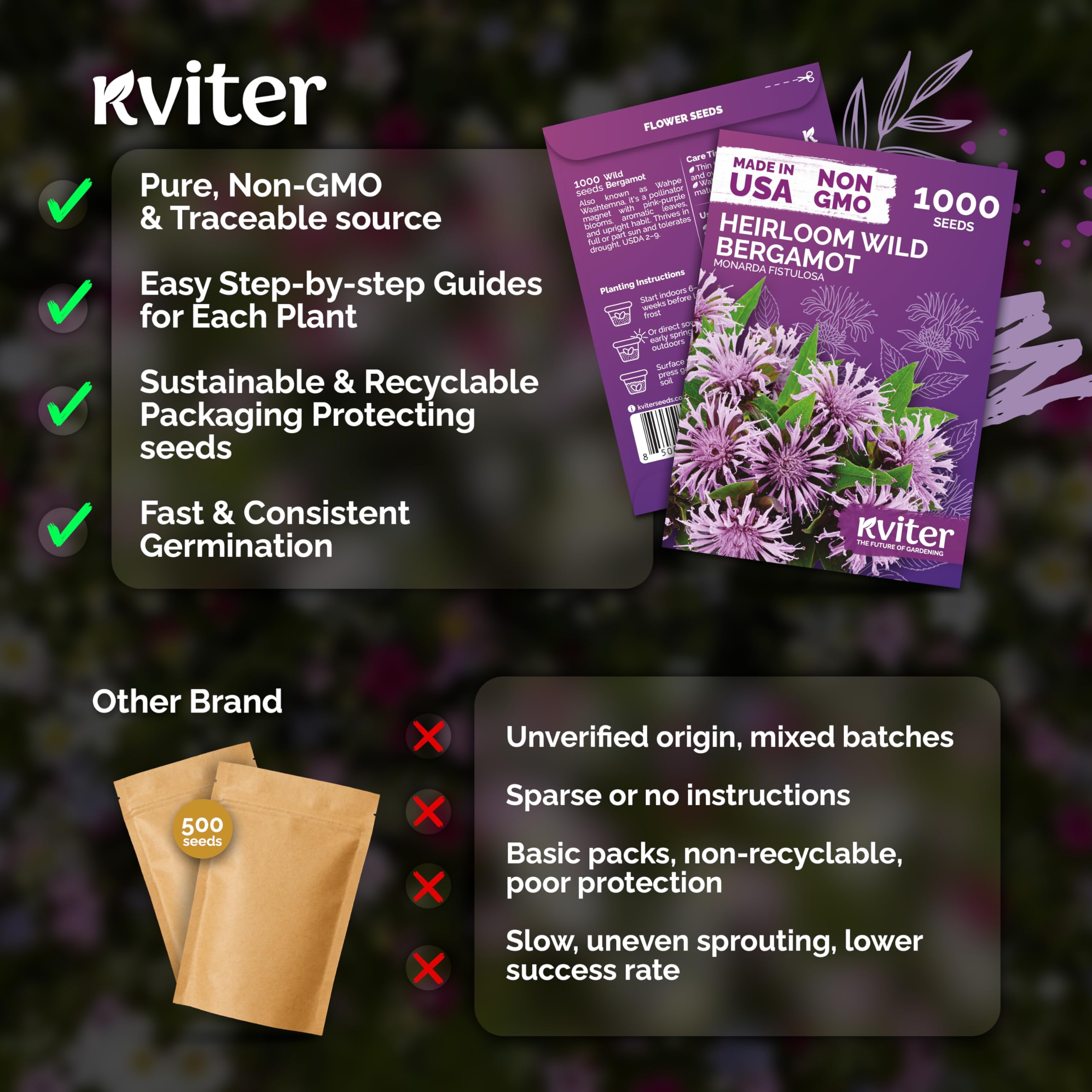 Quick Germination: bee balm seeds for planting outdoors sprout in 10–20 days at 60–70 °F when surface‑sown and kept moist; perfect for USDA 2‑9 flower beds, containers—wild bergamot wildflower seeds that lure pollinators.