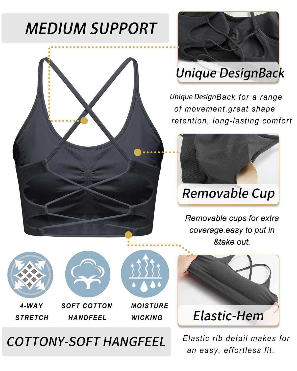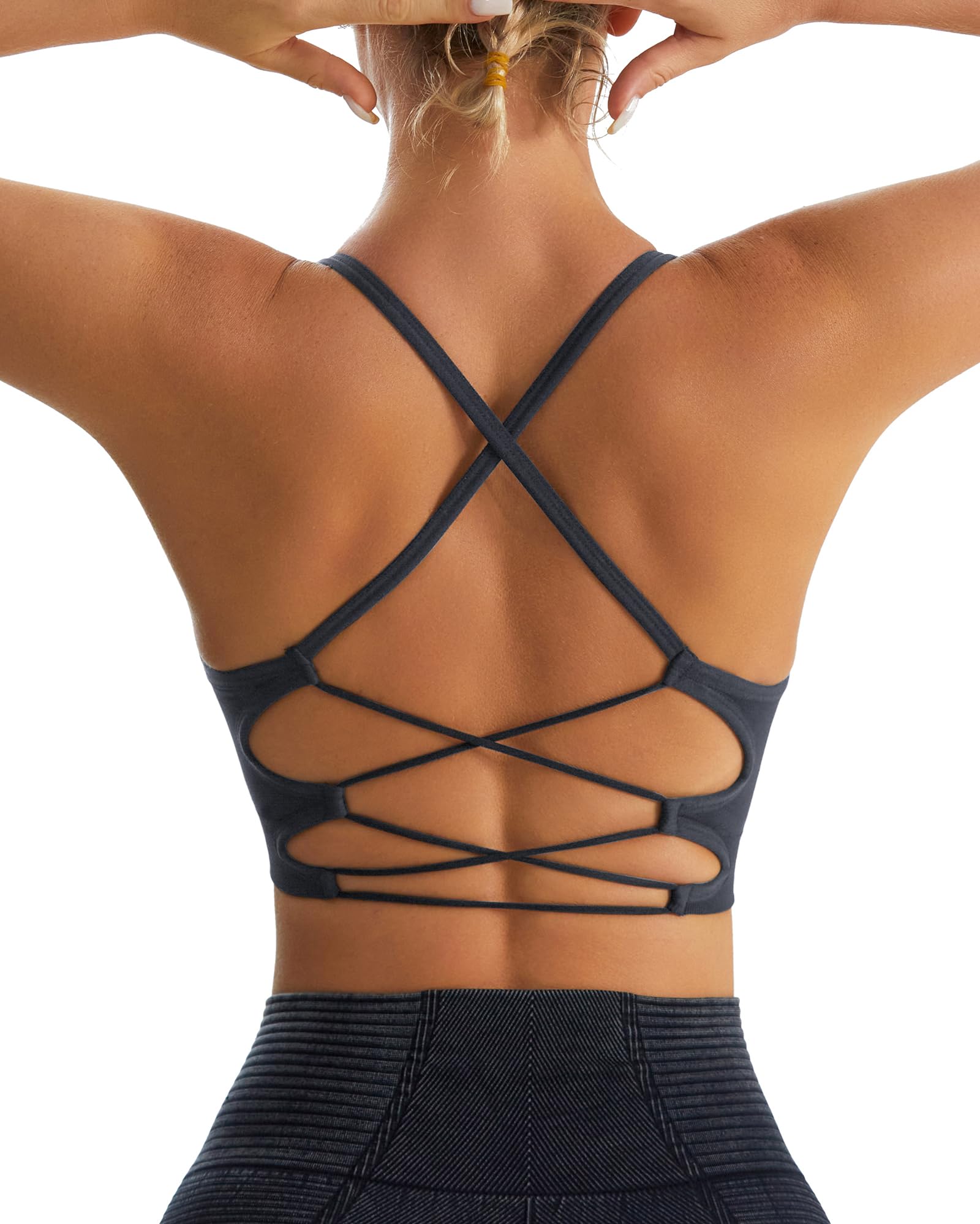 Practical and Aesthetic Design- strappy sports bra blends fashion and function, which includes crisscross back and spaghetti strap showing a charming back curve. The backless sports bra can offer extra support for back and release the shoulder blades, precisely positioned to free your arms and give you space to doing yoga and maximum support to run in comfort and style. The racerback sports bras for women must can win your heart.