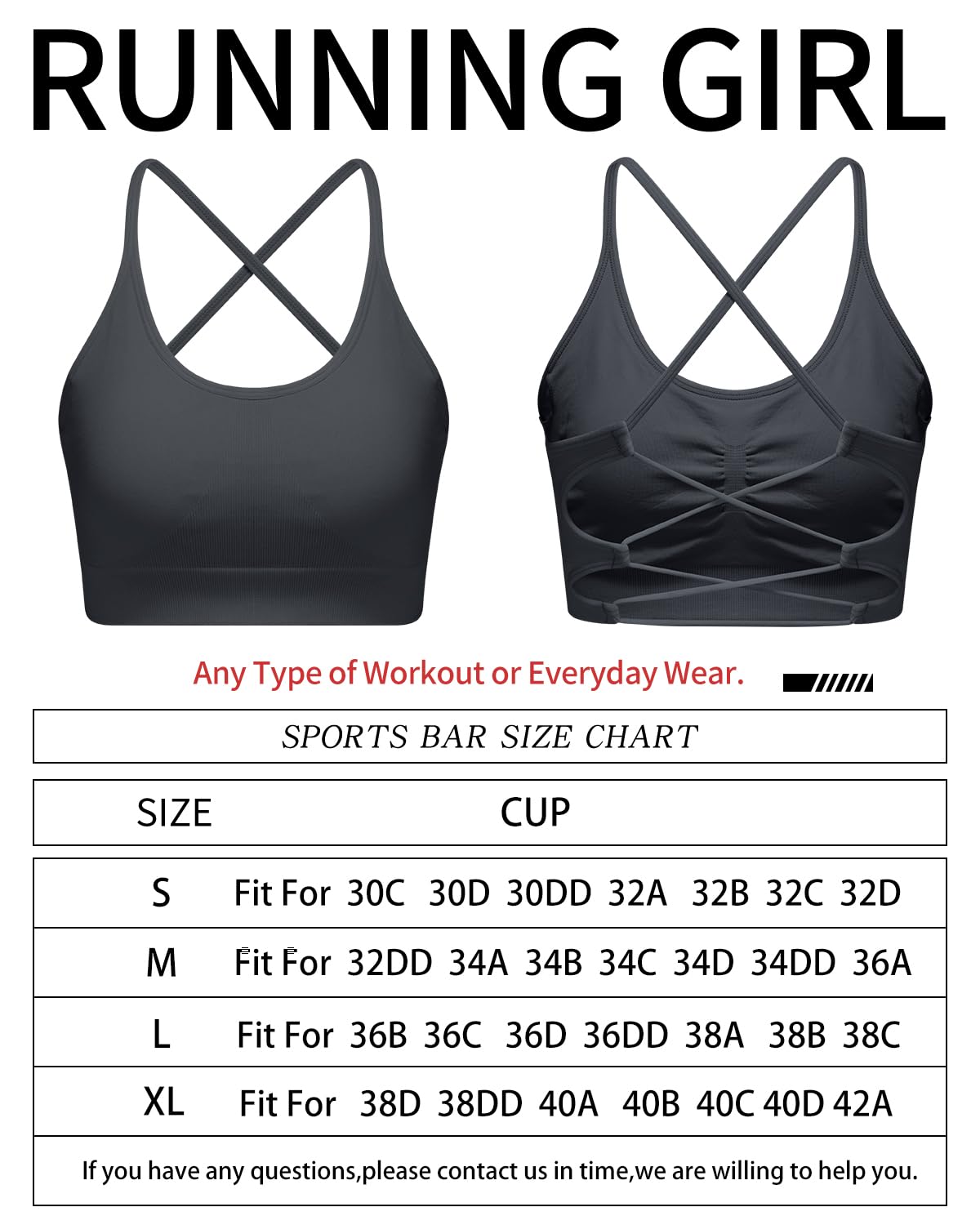 Satisfactory Serve- Please check our size chart carefully before you purchase our sports bra. Any problem of our products areSatisfactory Serve- Please check our size chart carefully before you purchase our sports bra. Any problems of our workout bra are well received, If you are not satisfied in supportive sports bras for women, feel free to email us for service,we will try our best to help you to solve it.