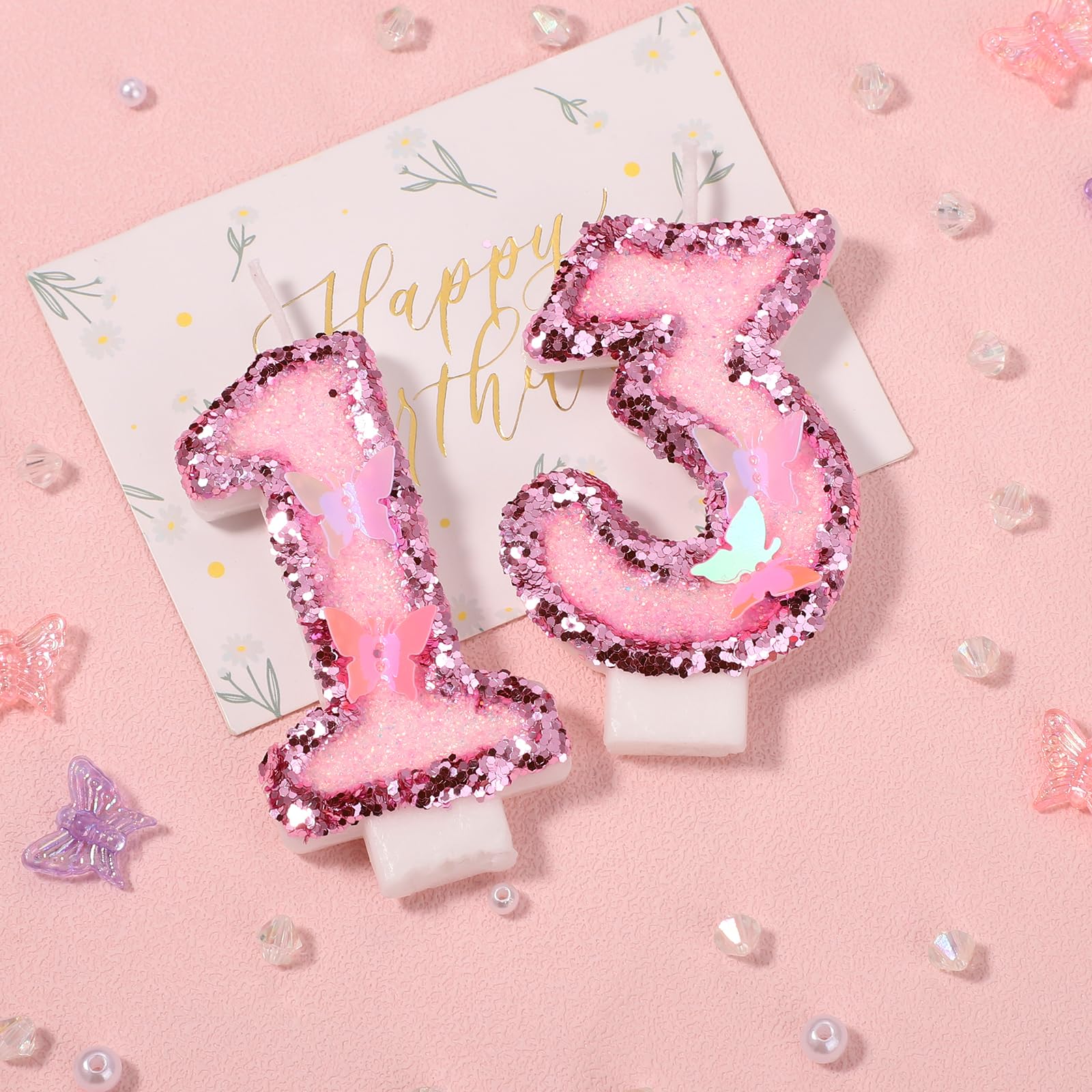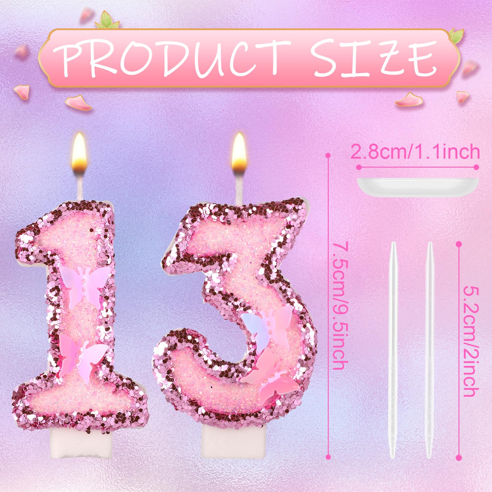 Quality Material: The cake candles are made of quality wax, pink sequins, and butterfly charms, which are reliable, easy to insert and ignite, and provide you with good service, so you can use them with confidence.
