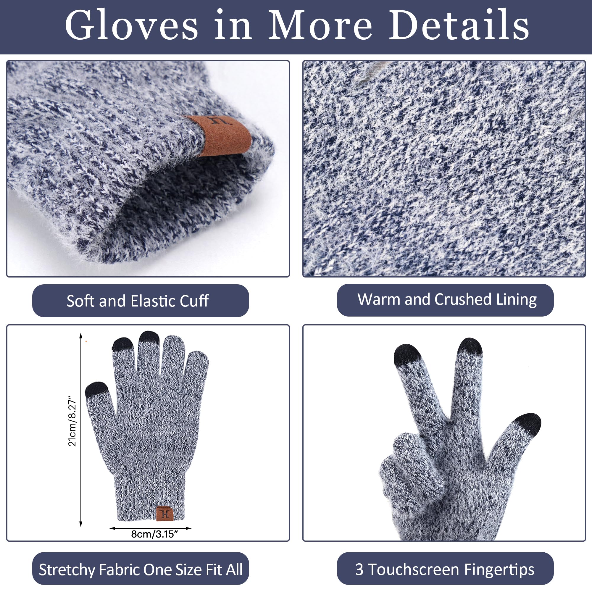 Description Womens Winter Beanie Knitted Hat Ski Snow Skull Cap Long Large Scarfs Shawl Wrap Touchscreen Gloves Sets Soft Warm Knit Fleece Lined Skull Cap for Women Versatile Knit Winter Beanie Hat -- We've constructed our knit beanie with polyester. It is stretchy and comfortable enough to fit many people head. The thick fleece lining gives you comfort and warmth without making you feel itchy at all. Winter Warm Long Scarves -- Soft, Warm, Lightweight and Breathable. The knitted long scarf has good elasticity and Anti-Pilling performance, allowing you to express your style in a variety of ways of wearing. Very suitable for travel or as a gift. High Sensitive Touch Screen Gloves -- Double layers touchscreen sensitive materials on 3 fingers (thumbs, forefinger and middle finger), enjoy using smartphone, tablet, texting, driving in extreme cold weather. Excellent Gift Choice -- An idea gift for family, loved ones and friends in Christmas, Birthday, Valentine's Day, New Year’s Days, Wedding Anniversary, Thanksgiving Days and more. Perfectly match with your winter or spring outfits for any occasion – During the colder months you can accessorize any outfit by pairing it with a stylish soft long scarf. You can tie around their neck for a fashionable business casual outfit, and can pair with office attire or where as a shawl to keep their shoulders warm. Easy to match with different outwear and great for hunting, hiking, climbing, biking, and other outside games or formal wear. Package Included: 1× Winter Beanie Hat + 1× Touchscreen Gloves + 1× Long Scarf (3 in 1 set);