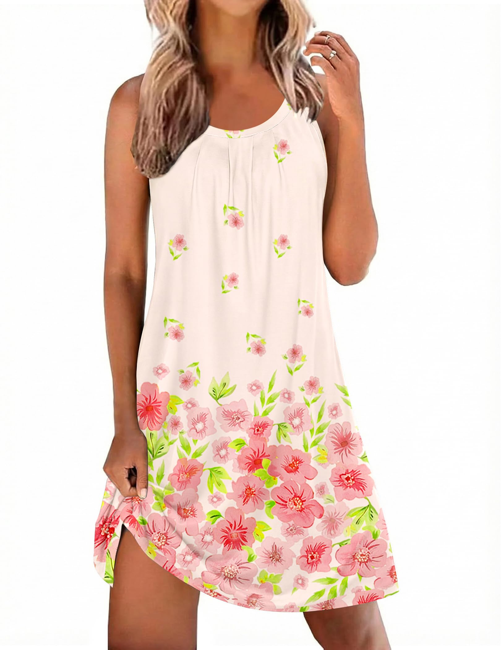 STYLE AND GENEROUS: Wide Shoulder Strap Halter(more comfy tank spaghetti), Pleated Design (Featuring Pleated design on the front and back, this tank sleep dress looks particularly cute), Above Knee Length ( More cold, young and vigor), Soft Fabric (Made of Soft comfy fabric)