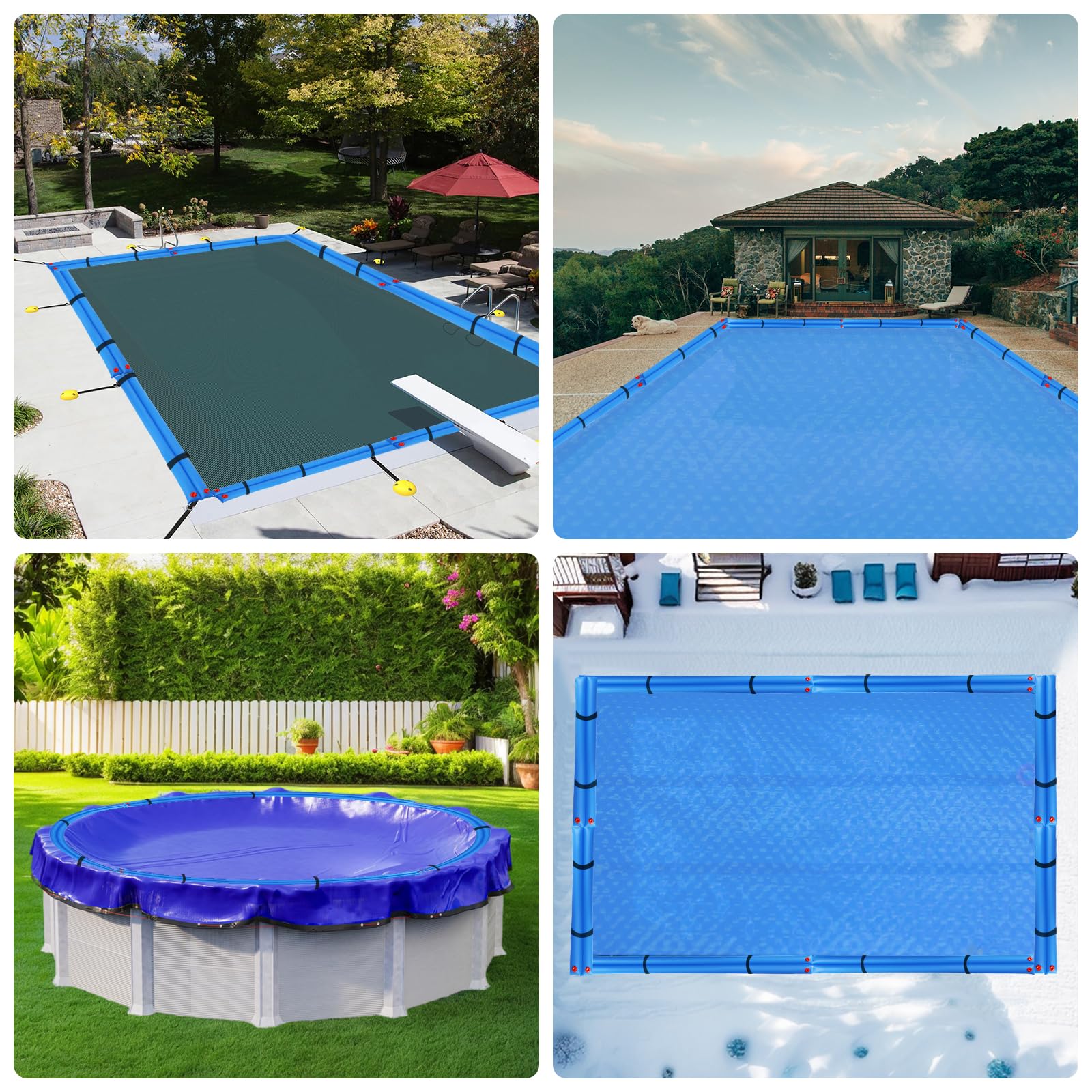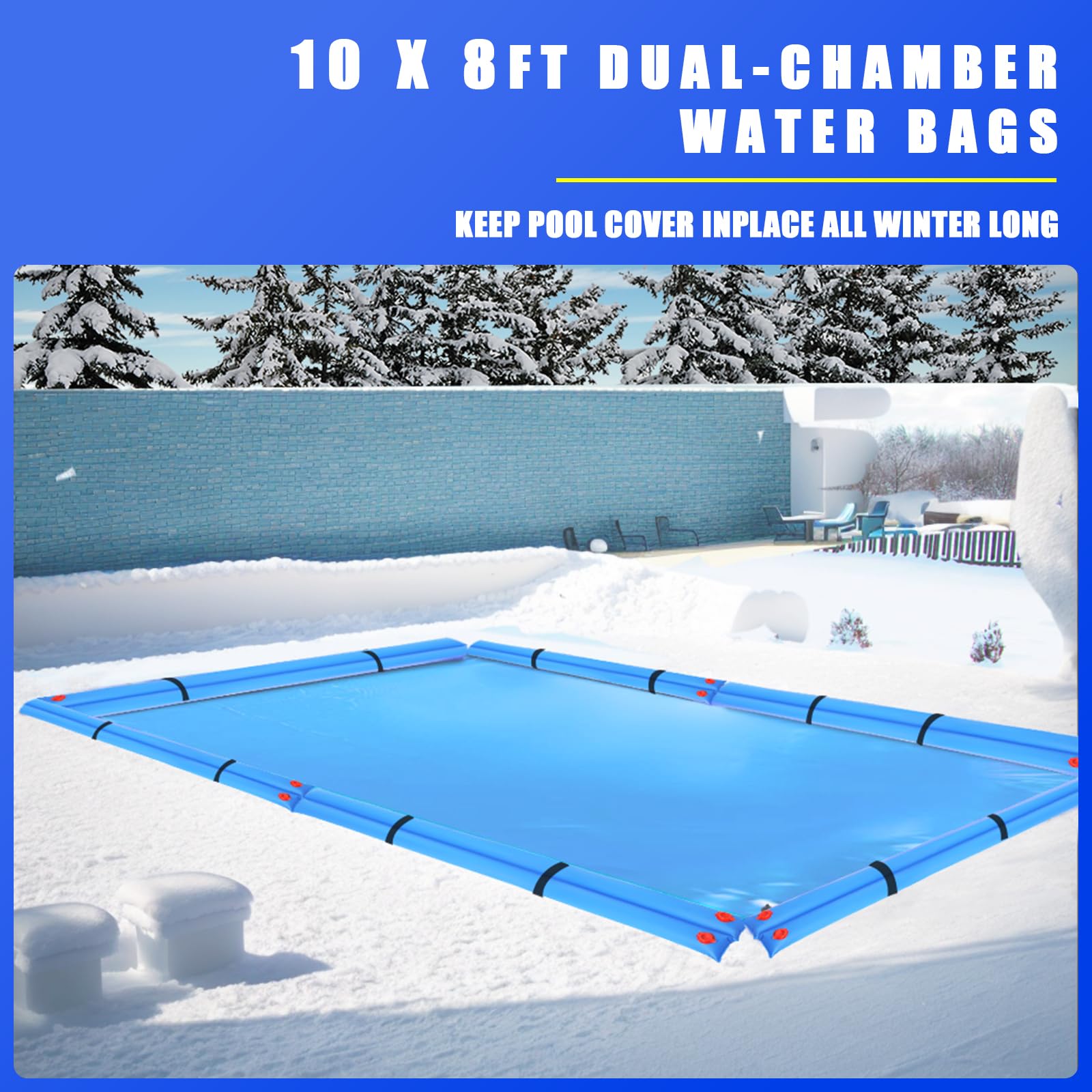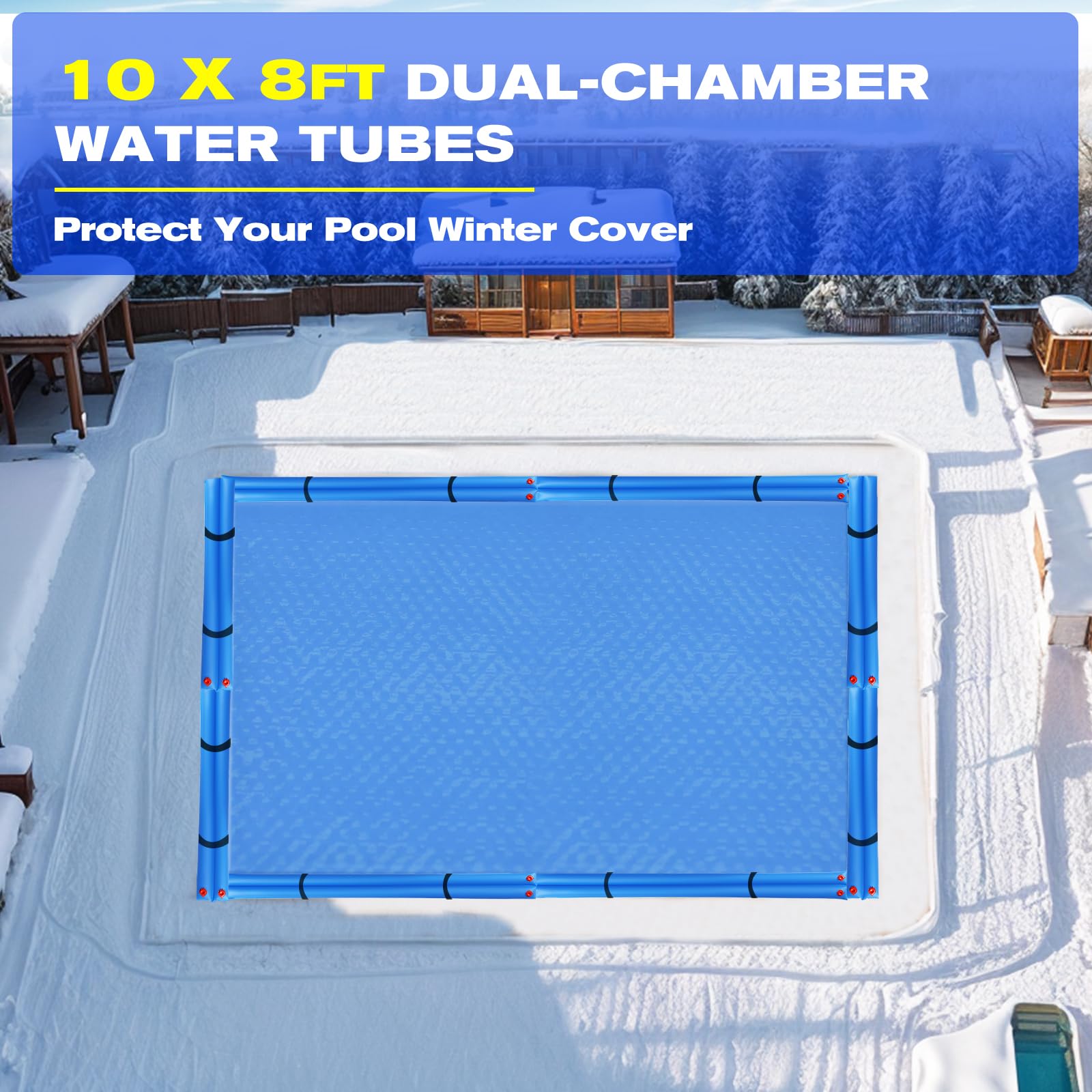 【Protect your Winter Cover】-The water bags are made of durable and cold-resistant materials. These water tubes help keep your swimming pool winter cover in place during all snowfall season,and it can keep leaves and debris out of the pool. Fit for your in-ground rectangular or above pool cover.The upgraded sealing technology ensures that the pool water pipes will not leak or tear throughout the winter.