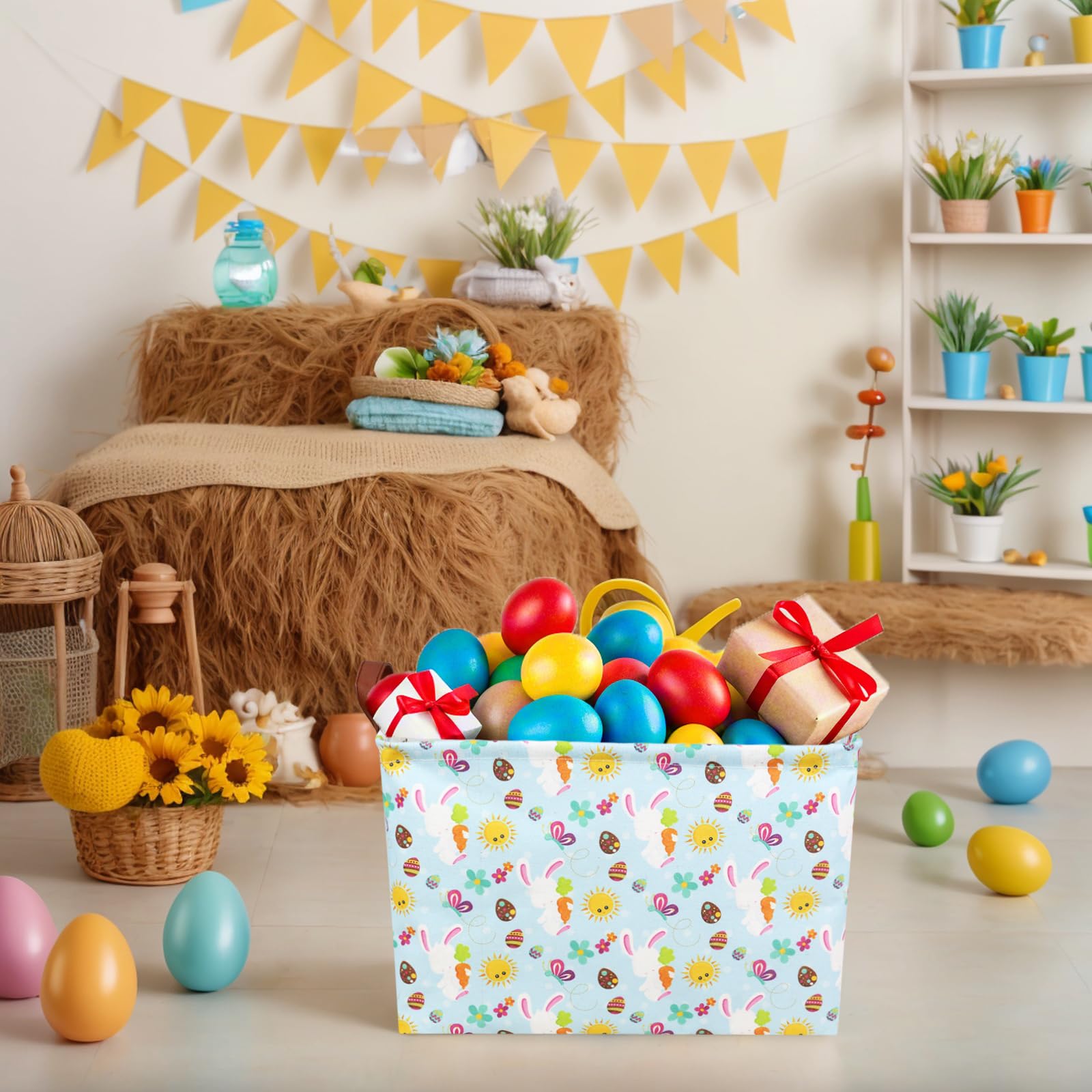 【LARGE CAPACITY AND FASHIONABLE PATTERNS】: The children's Easter basket has a large capacity and can accommodate larger Easter gifts and items. The Easter gift basket is digitally printed with patterns featuring Easter eggs and rabbits as the theme, with bright colors that will not fade.