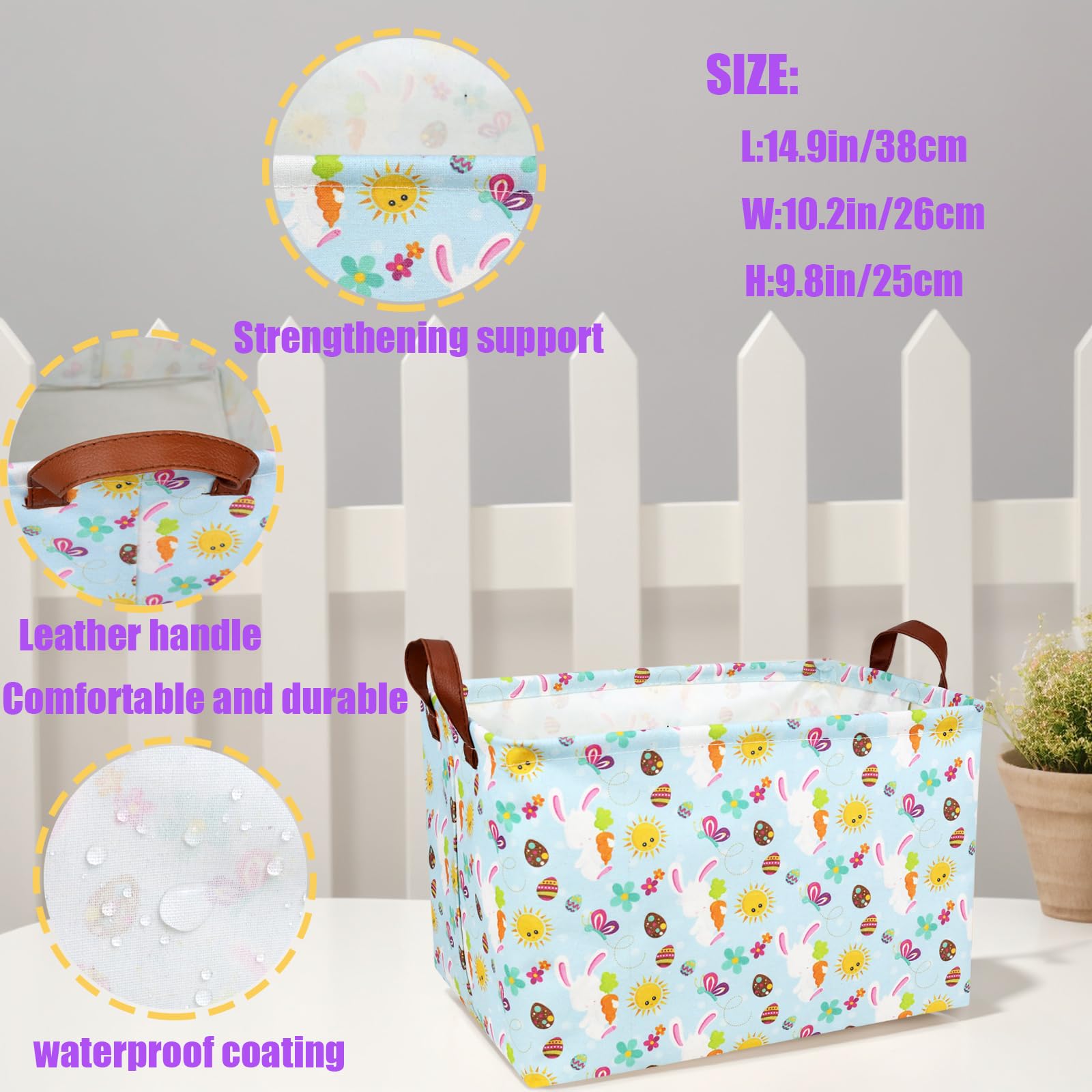 【BASKET MULTIPURPOSE】: An empty Easter gift basket can hold more gifts and is the perfect gift for friends. It is also very suitable for storing children's toys, clothes, and household items in daycare centers, laundry room,kid's room, game room, craft room, bathroom, bedroom, and cloakroom.Using this basket for decoration during Easter is also an ideal choice for searching for Easter eggs or storing holiday gifts and toys.