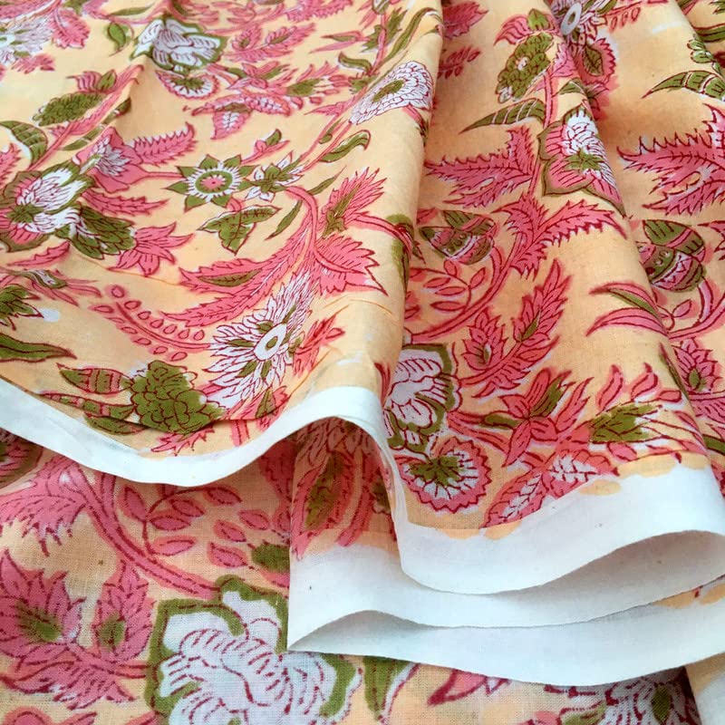 FABRIC WIDTH: 44" And LENGTH: 3 Yards. , Color: Multicolored . 100% Soft Cotton medium weight, Indian Wood Hand block fabric.