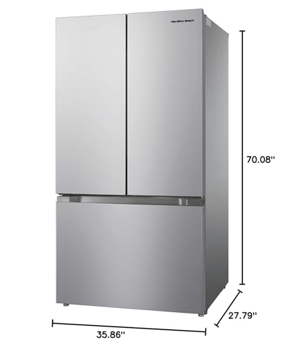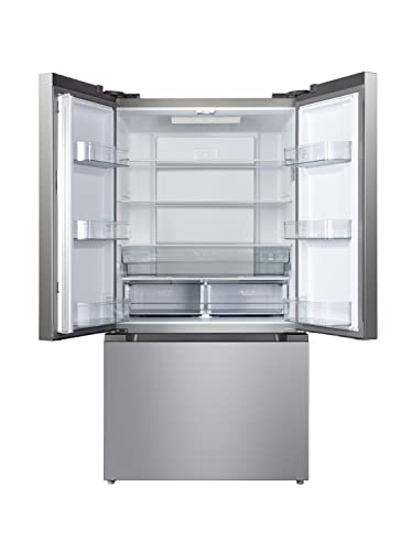 Our modern Refrigerator has a 2 French doors configuration with a refrigerator compartment on top and a freezer with a 2 doors compartment at the bottom. Featuring an adjustable thermostat, a built in lamp, slide out shelves and adjustable feet, This CFC free unit will allow you to easily store your snacks and beverages to keep them fresh at all time.