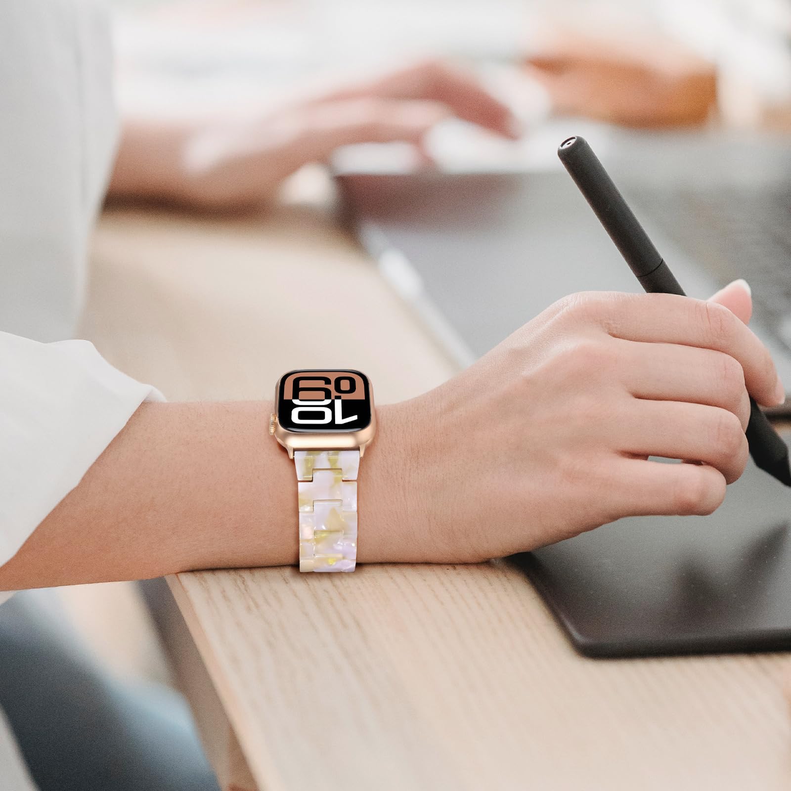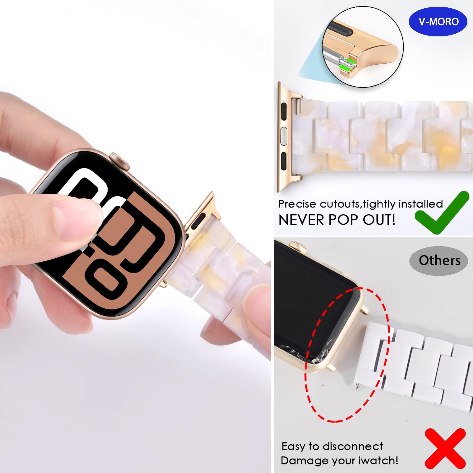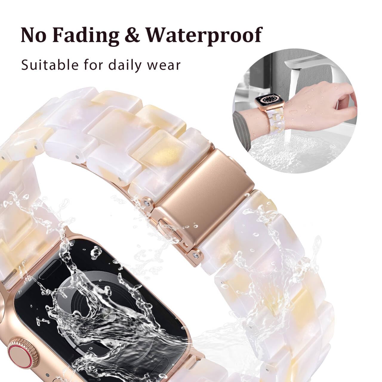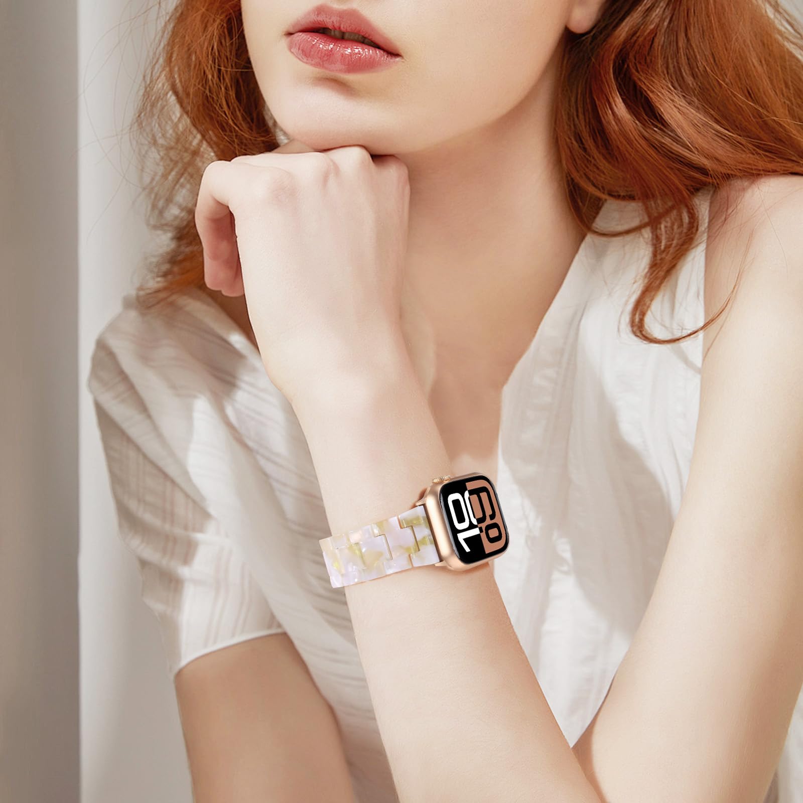 🎅Stylish Colorful Design - From different angles of light and shadow, the band will bloom with a unique halo, and each angle can emit a different luster. The resin surface is smooth and translucent, when there is no light reflection, the band presents a milky white color.When light comes, colorful pearl bloom.