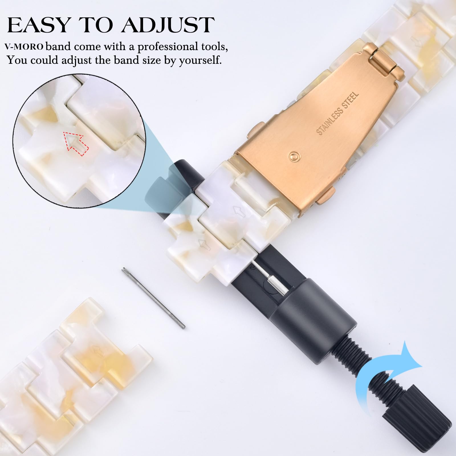 🎅Easy to use and adjust - You only need to press easily the buttons on both sides of the Stainless Steel Buckle to open the strap or release it. The package is contain a links removal tool, an instruction. You could easily remove the extra links to fit your wrist perfectly