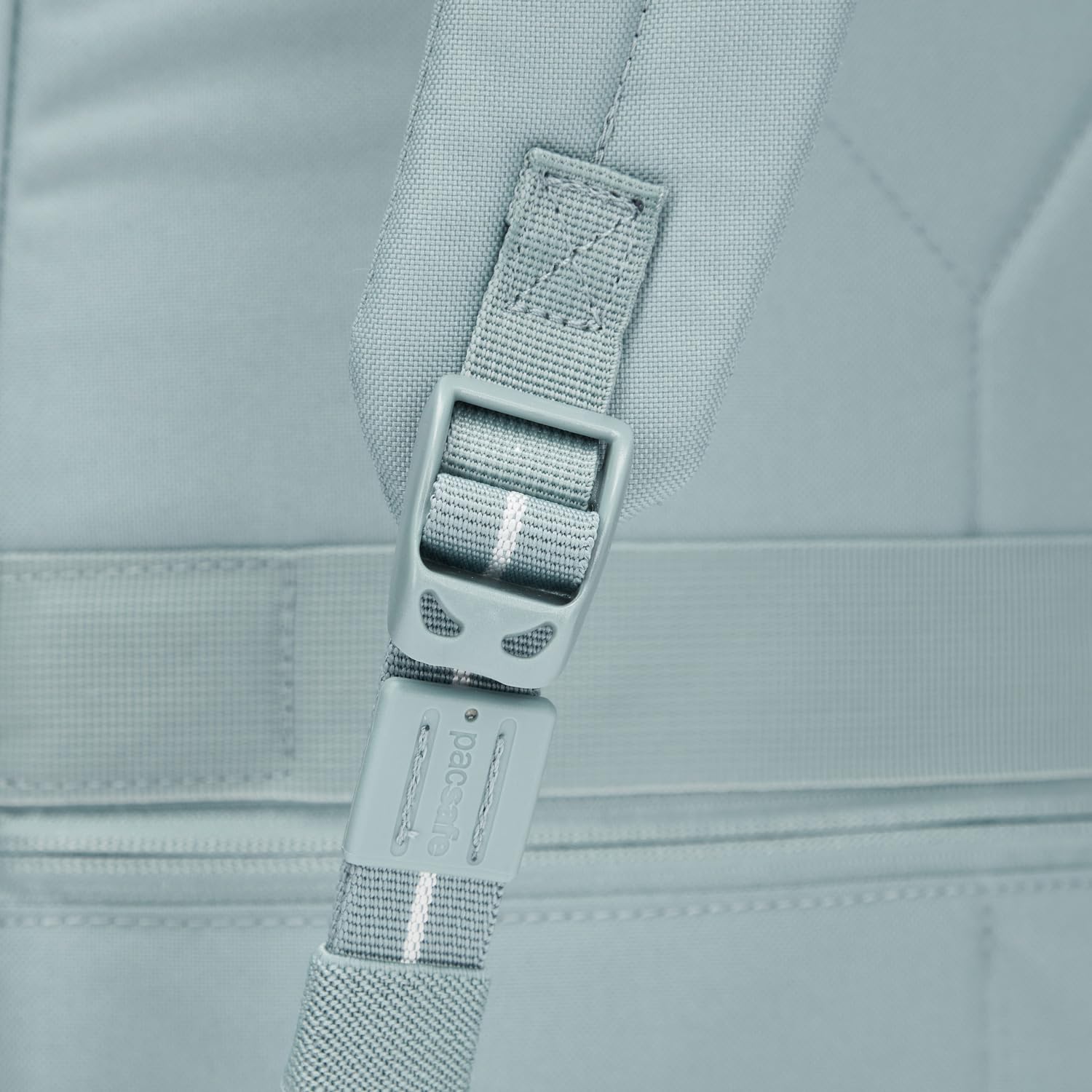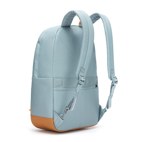 DIMENSIONS, WEIGHT & WARRANTY - 18.1"H x 12.2"W x 5.5"D, 1.6 lbs. Made of soft, durable, water resistant and easy to clean recycled Polyester to ensure long-lasting usage everyday & during weekends. Comes with a 5-year Pacsafe warranty.