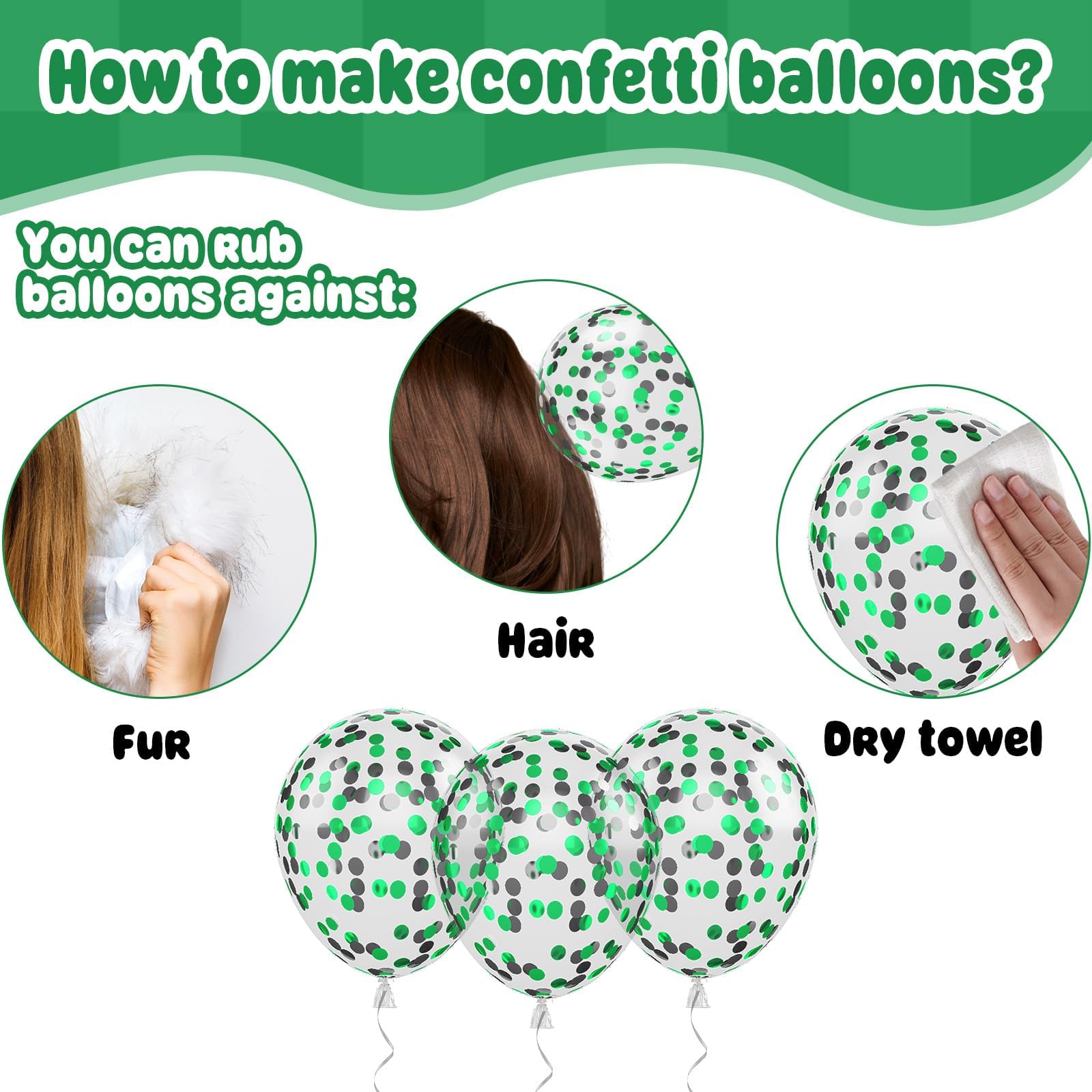 【EFFORTLESS SET UP】Assembly is simple—enjoy the fun of DIY! For helium inflation, tie the balloons with the included ribbons for a polished look. To make confetti balloons stand out, gently rub the balloon on fabric to create static, which helps the confetti stick evenly. These balloons can be placed anywhere—trees, walls, windows, or doorways—to create a festive atmosphere. They can also be paired with other colors to fit different party themes, making decorating a breeze.