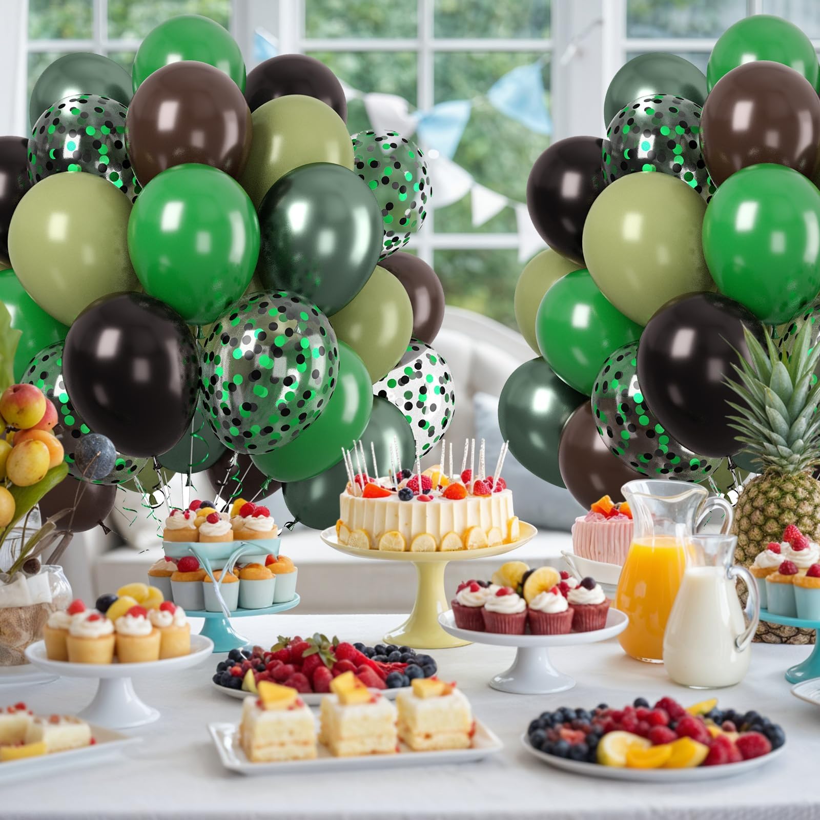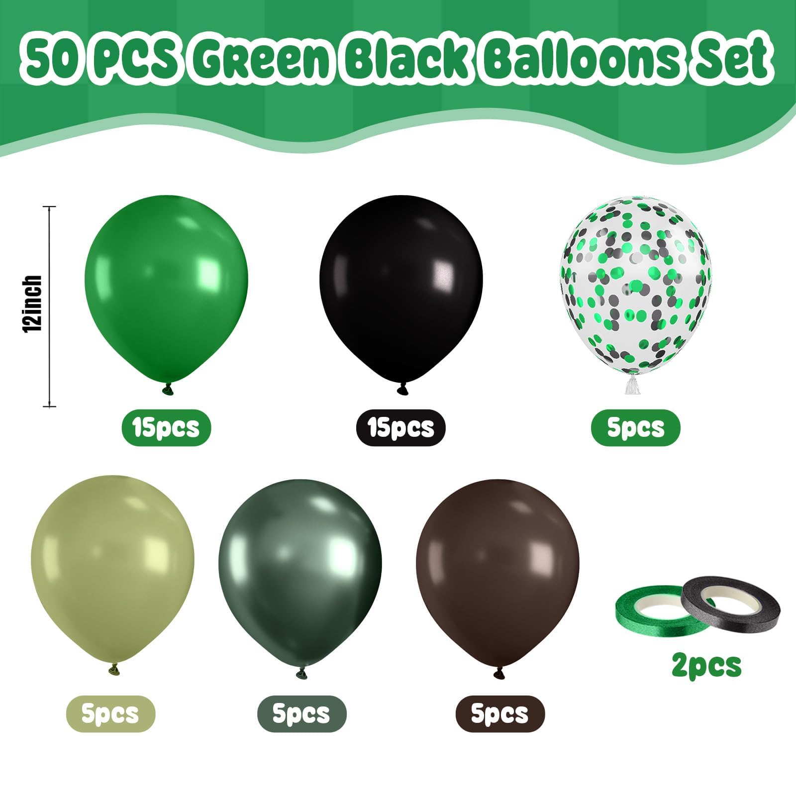 【PREMIUM MATERIAL】 Our green black brown balloons set is made of premium latex. Suitable for various occasions, they can be filled with either helium or air, and when tied securely, they'll stay inflated for several days! With great elasticity, these balloons can be inflated to a sufficient size and handle regular use. Enjoy your celebrations with these reliable balloons!