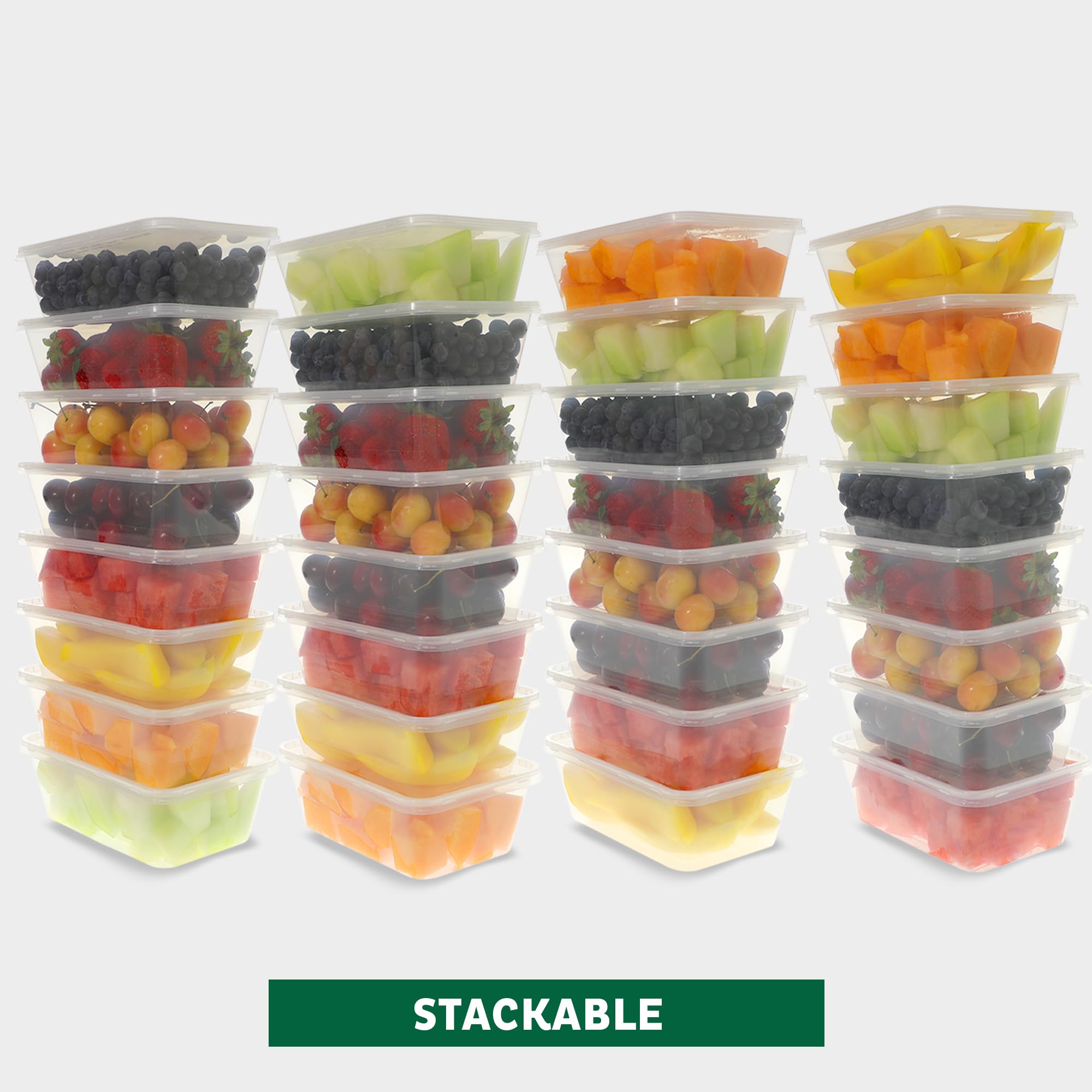 Stay Fit And Healthy - Enjoy Nutritious Homemade Meals Everywhere With The #1 Food Storage Containers By Freshware! Are you sick and tired of spending money on buying readymade unhealthy food? Meet The Ultimate Meal Prep Containers, Your New Best Friend In The Kitchen! Provide yourself and your family with a decent meal prep of controlled portions with main course, salad, dressings, condiments, sauces, fruit, soup and healthy snacks, all nicely packed in this super convenient bento lunch box container. These food savers can also be used as lunch box, last night’s dinner, or slime containers! Supreme Quality and Premium Design Combined! These reusable lunch containers with lids for meal prepping are made from 100% BPA, PVC, and Phthalate free food-safe material. Stackable, airtight and leak-proof when closed - these deli containers won’t let your food spill all over the pace. Our clear lids and 25 oz containers make it easy to see what’s inside so you know exactly what you’re grabbing for in the fridge or lunch box, making life so much simpler. Microwave, dishwasher, and freezer safe! Our easy open lids are made with flexible PET plastic that will never break. Healthy Lifestyle Starts with Freshware: - Prepare more meals in advance and freeze them for the busy days when you won’t have time to cook. - Microwave them to enjoy a delicious hot meal. - Clean them hassle free in the dishwasher top rack. Box Size: 6.7 inch length x 4.5 inch width x 2.4 inch height. Volume: 25 ounce. Pack of 50. These Meal Prep/ Portion Control/Food Storage Containers are a great new alternative to expensive plastic containers. Perfect lunch boxes for or bento box for work, while they are highly recommended by most fitness experts.