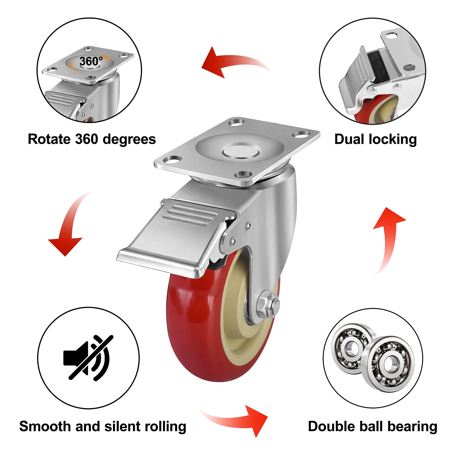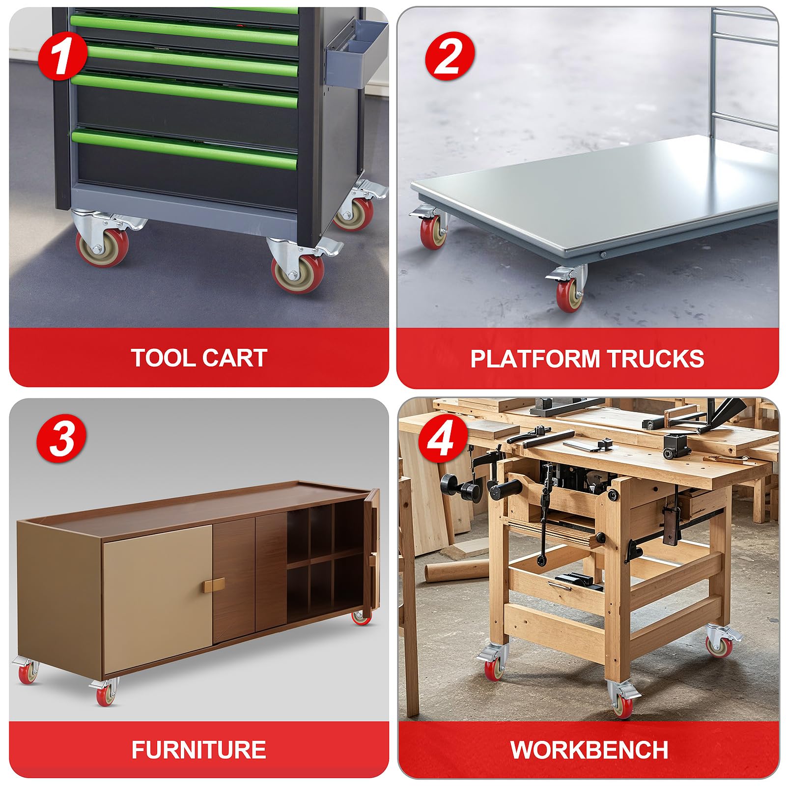 MULTIPLE USES - 4 inch caster wheels can be installed in furniture, cart, hand trailers, rolling workbenches, tables, beds, wardrobes, building scaffolding, etc.
