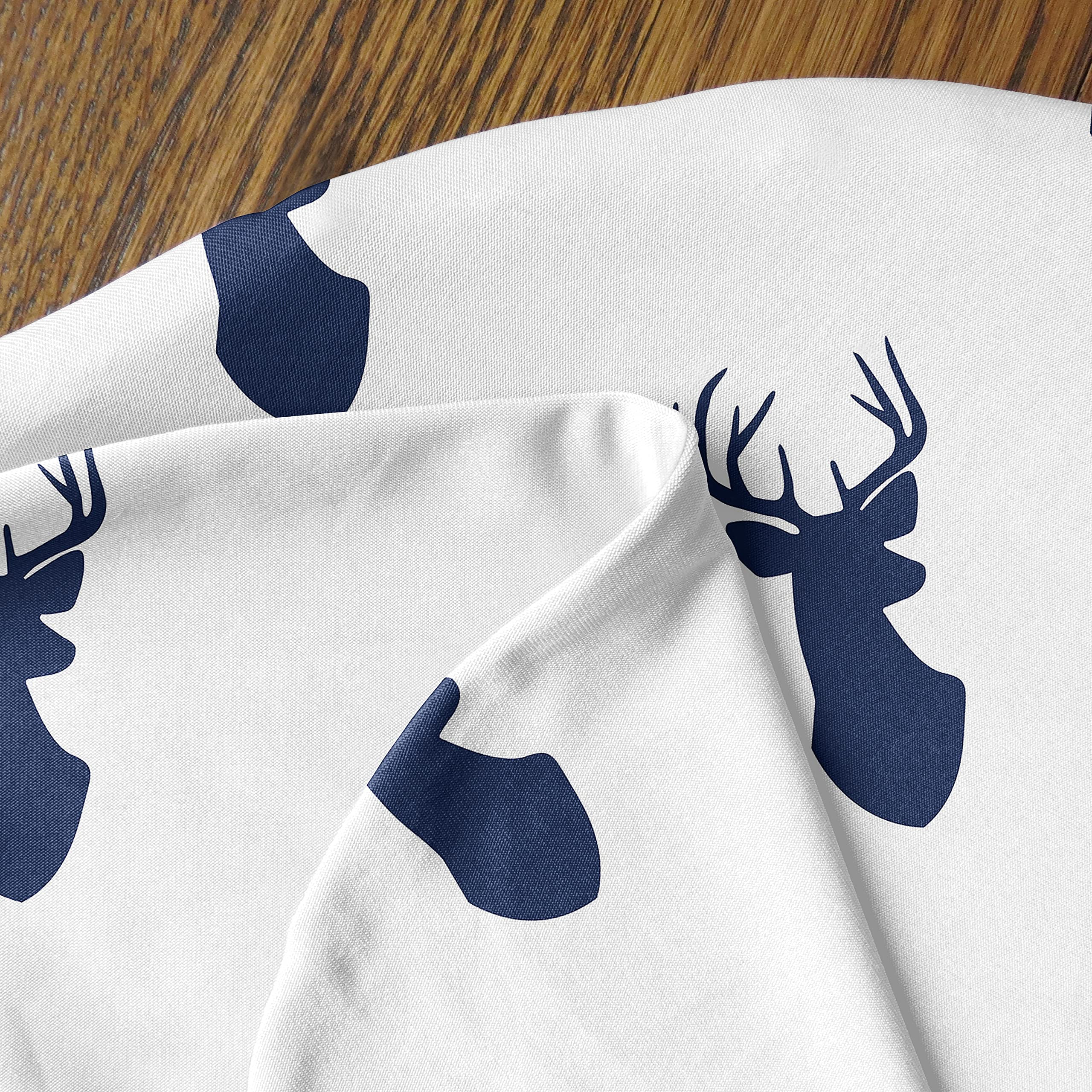 95% Rayon/5% Spandex Jersey Stretch Knit featuring navy blue and white woodland deer