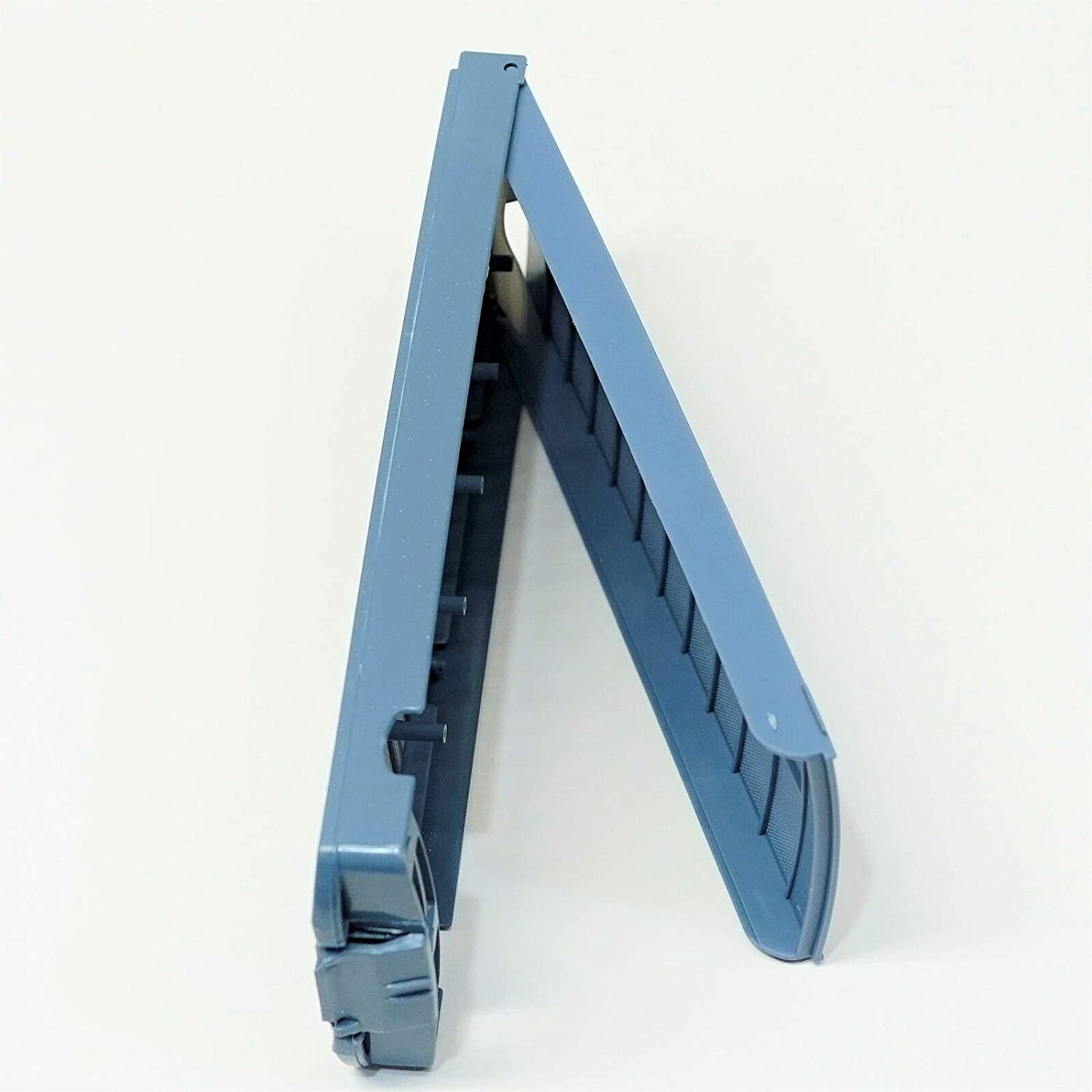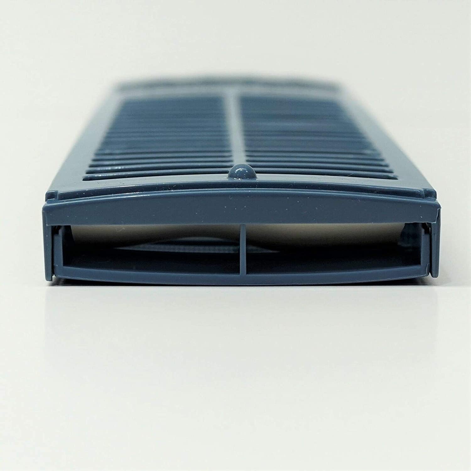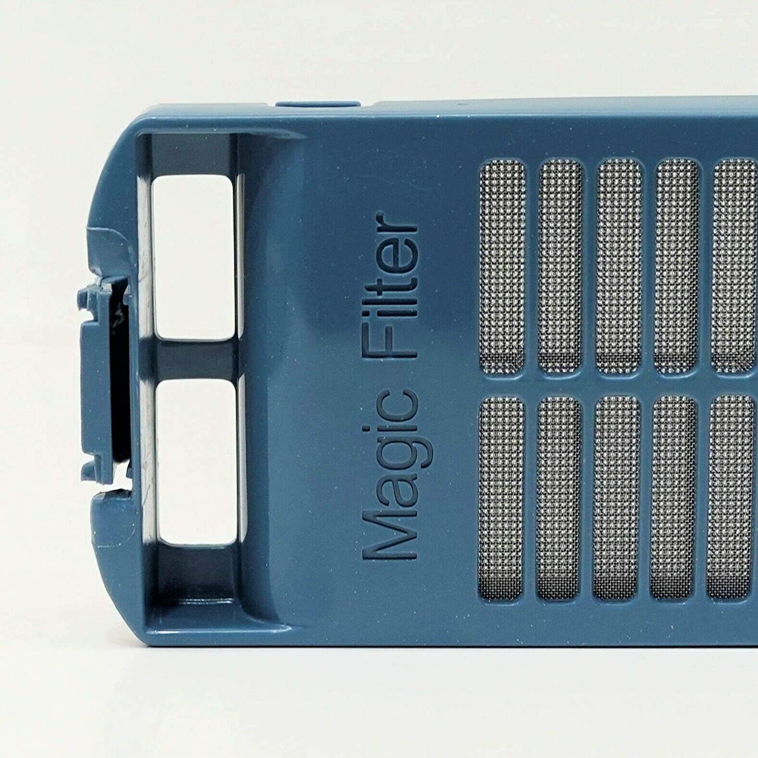 It measures 9-1/4" Long x 3-1/4" Wide. On one side it has 20 rectangular holes in the plastic, the other side has with 38 rectangulare holes in the plastic and molded into the plastic is the words "Magic Filter"