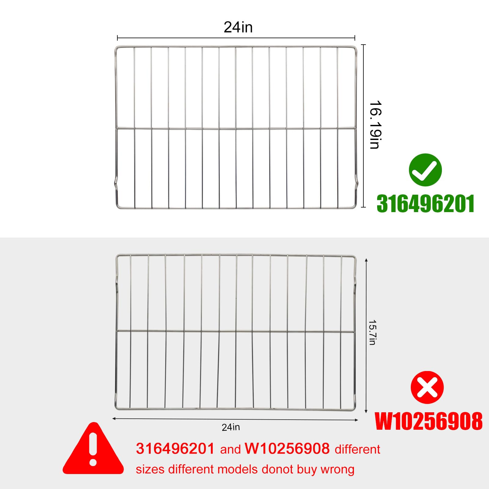 The dimensions of 316496201 is 24.2*16 inch. Grills are not universal, many oven racks are similar but not compatible, so please make sure your oven and oven rack model match before buying