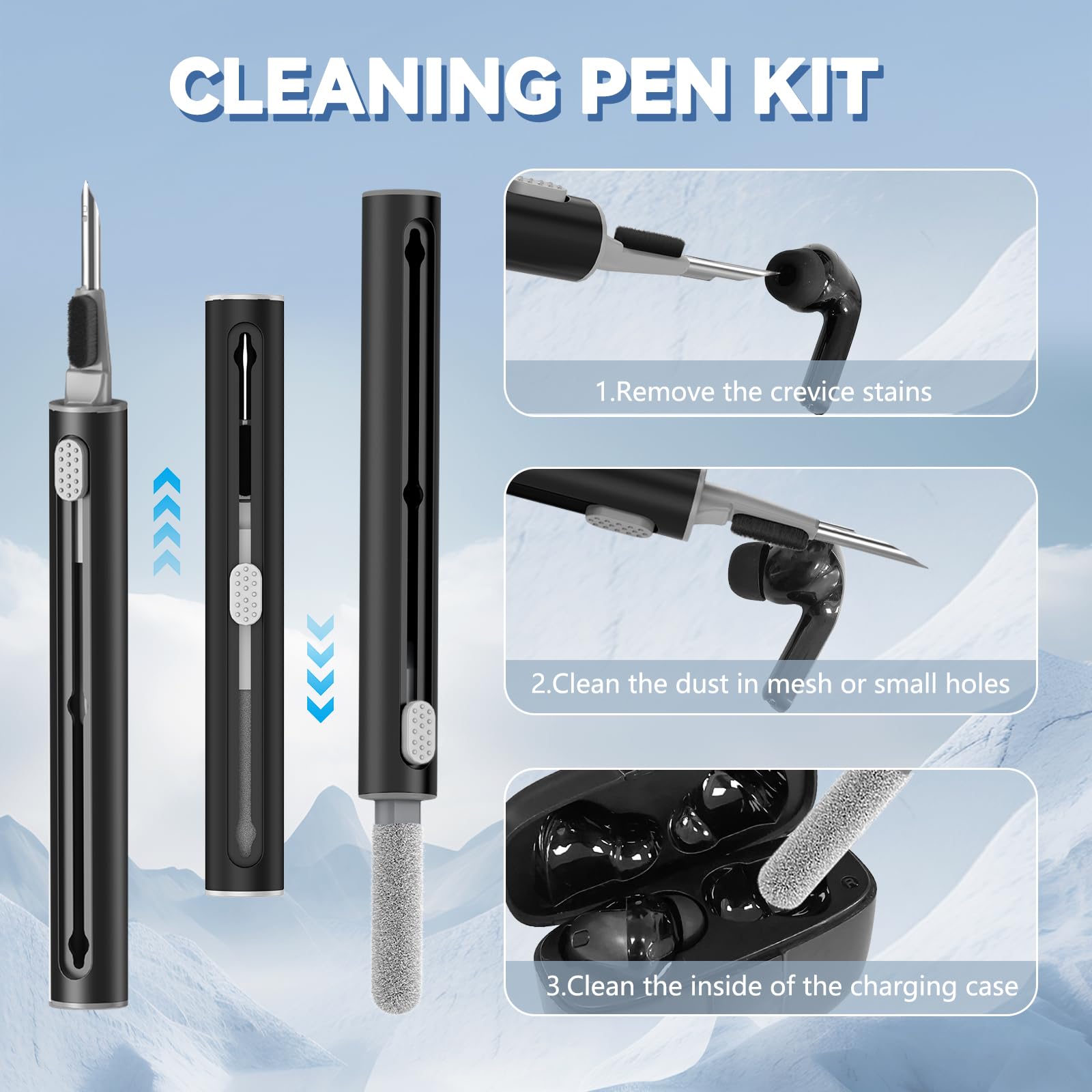3-in-1 Cleaning Pen: The metal head can remove stains from gaps, the microfiber brush can remove dust from meshes or small holes, and the flocked sponge cleans the inside of the charging box, keeping your TAGRY X08 wireless earbuds and charging case clean as new.