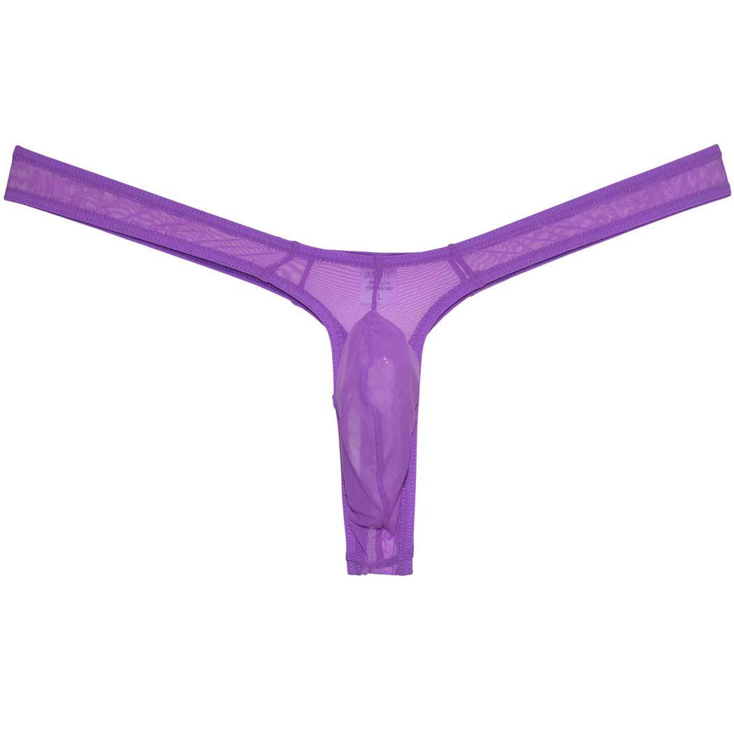 Minimal coverage, maximal comfort. This mini bulge thong cut features super narrow front, slim back and 1 inch side seams for a provocative micro-thog look. The Single-ply enhancing support pouch gives you a nice lift without being over-the-top. All elastic bindings are covered for a smooth, soft fit.