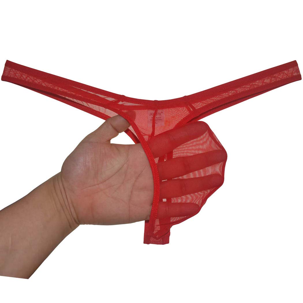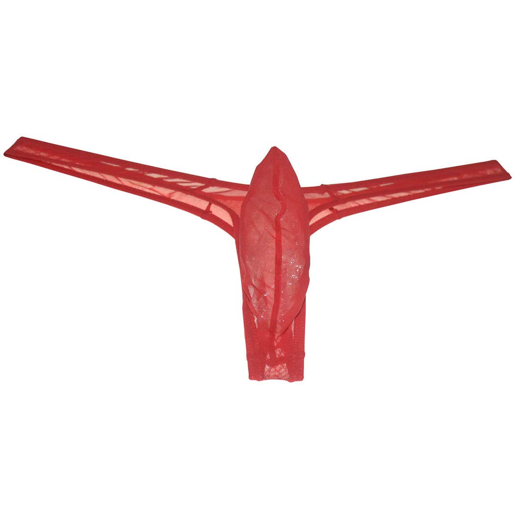The pouch is made of sexy see-through mesh fabric and is extremely contoured, hoisting up the goods for all to see.