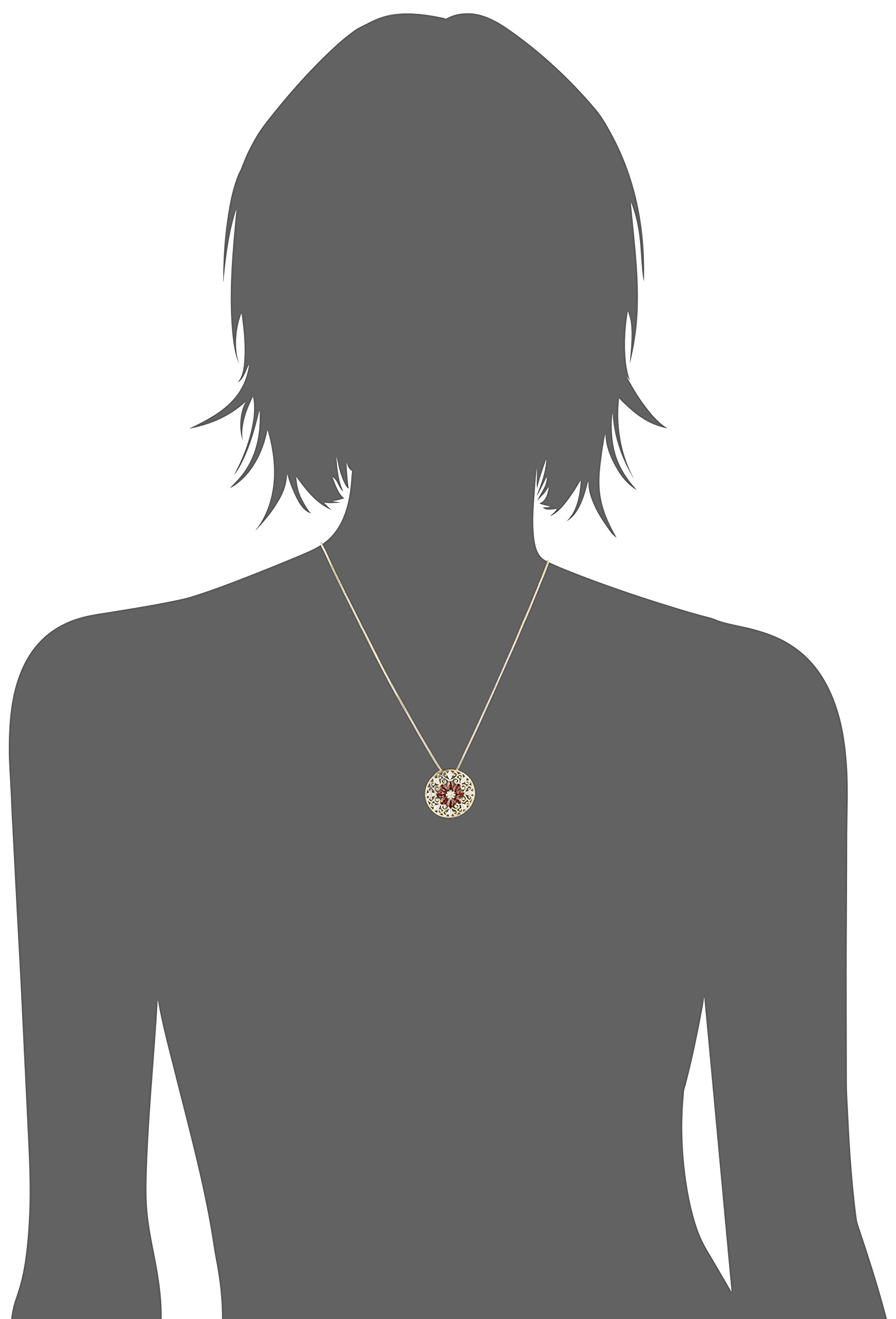 STYLE: Pendant necklace featuring an intricate openwork filigree mandala design with marquise cut genuine garnet and 0.005 cttw diamond accents