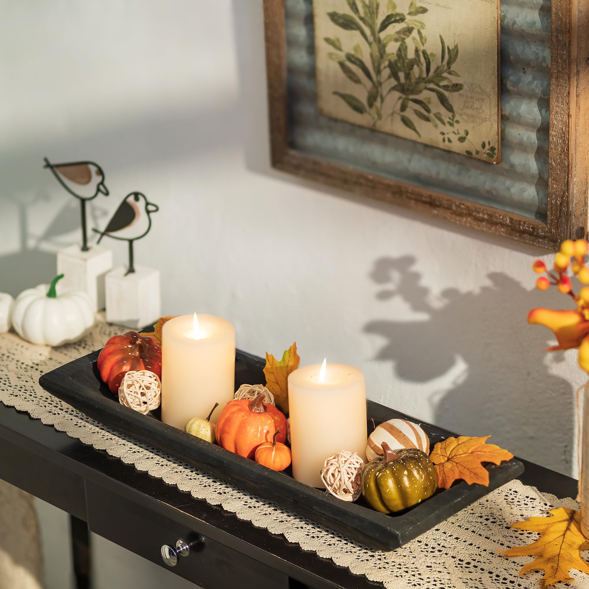 Size: 20x7x2.4",Handmade with care, our decorative wooden bowls may have minor size variations of +/- 0.5 inch. These shallow bowls are crafted exclusively for decoration, not for food use, but they serve as charming table centerpieces, perfect for candleholders.