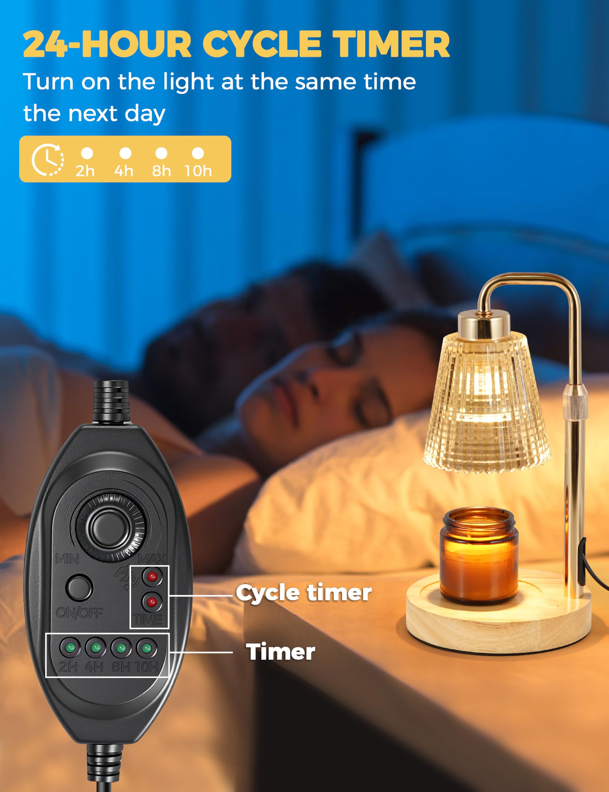 Fully Dimmable and 12-Hour Timing Function: Enjoy complete control over the ambiance with our dimmable knob, offering unrestricted dimming for personalized melting speeds. Additionally, our Candle+Warmer+Lamp boasts a convenient timer function, ensuring a perfect atmosphere tailored to your preferences, facilitating uninterrupted sweet dreams.