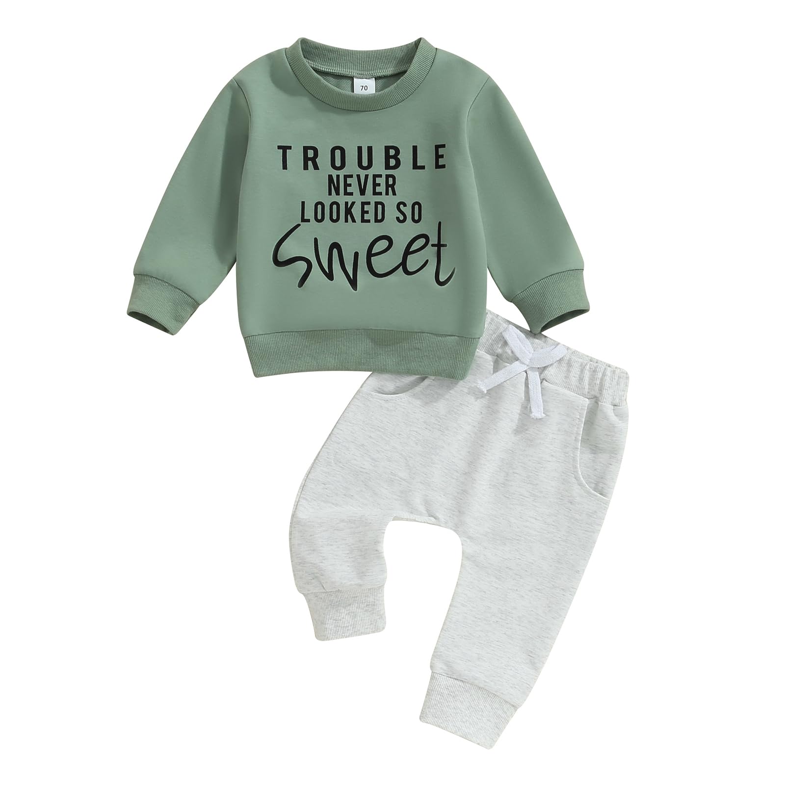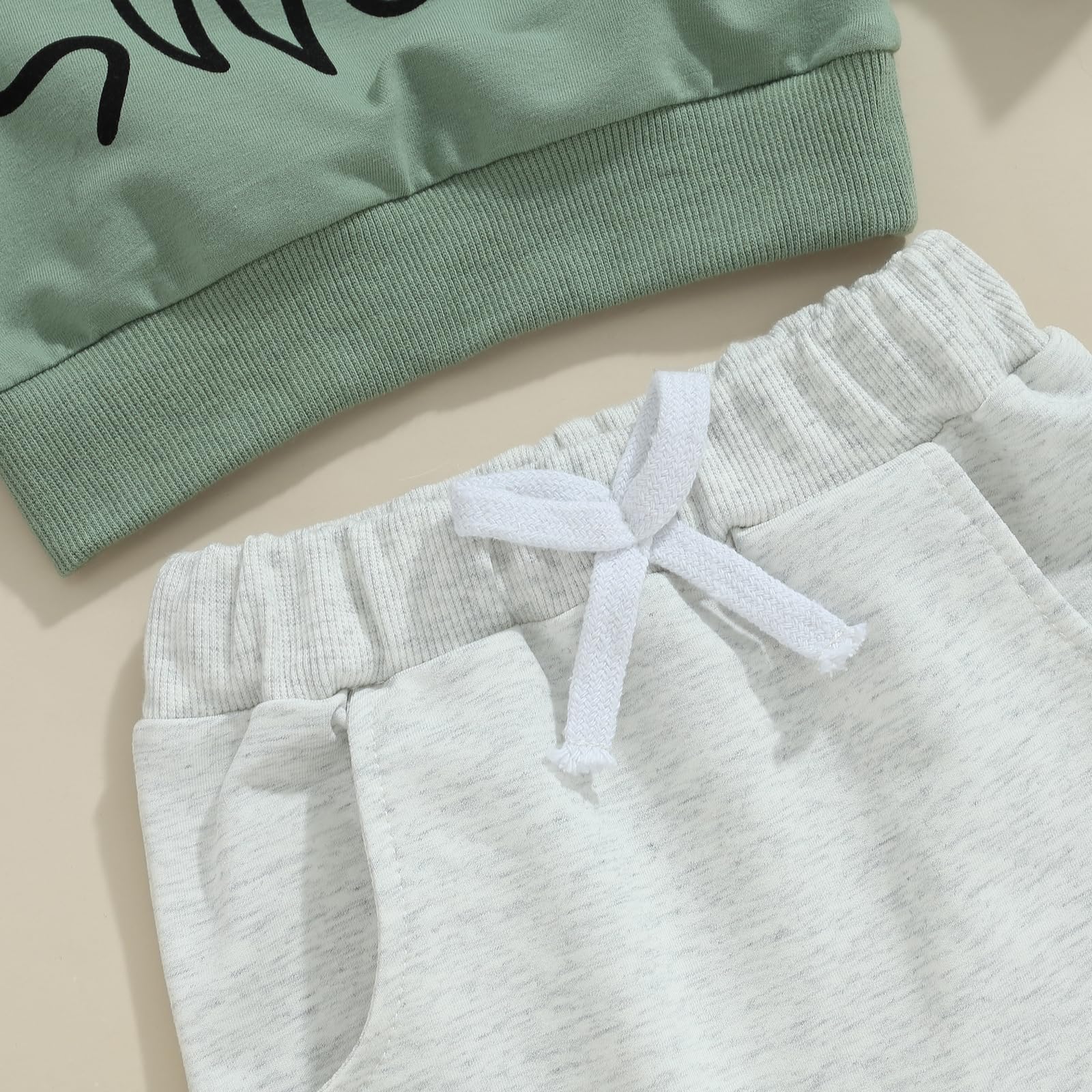Design: Infant baby boy 2Pcs clothes set, long sleeve, round neck, letter print pullovers tops, matching with elastic waistband, rope front, side pockets pants. Easy to put on and take off. Designed as tops and trousers to ensure your boy cool all-day in summer. Can be worn as playwear or special occasion