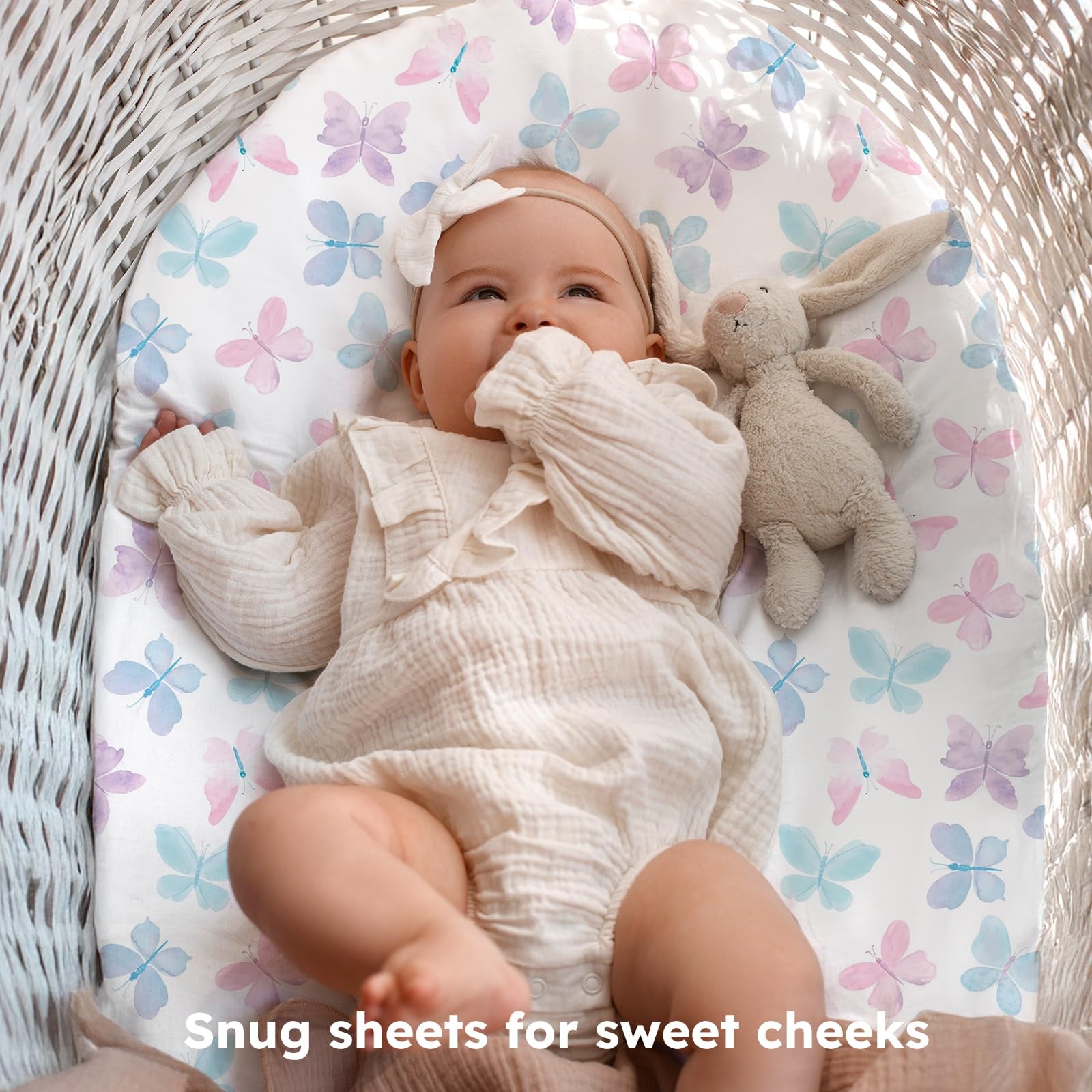 Easy Care & Sustainable: Made from pre-shrunk fabric, our bassinet mattress sheets resist fading, pilling, and shrinking, even after hundreds of machine washes. With double-stitched edges and corners, our bassinet crib sheets are built to last, staying with your baby through every stage.