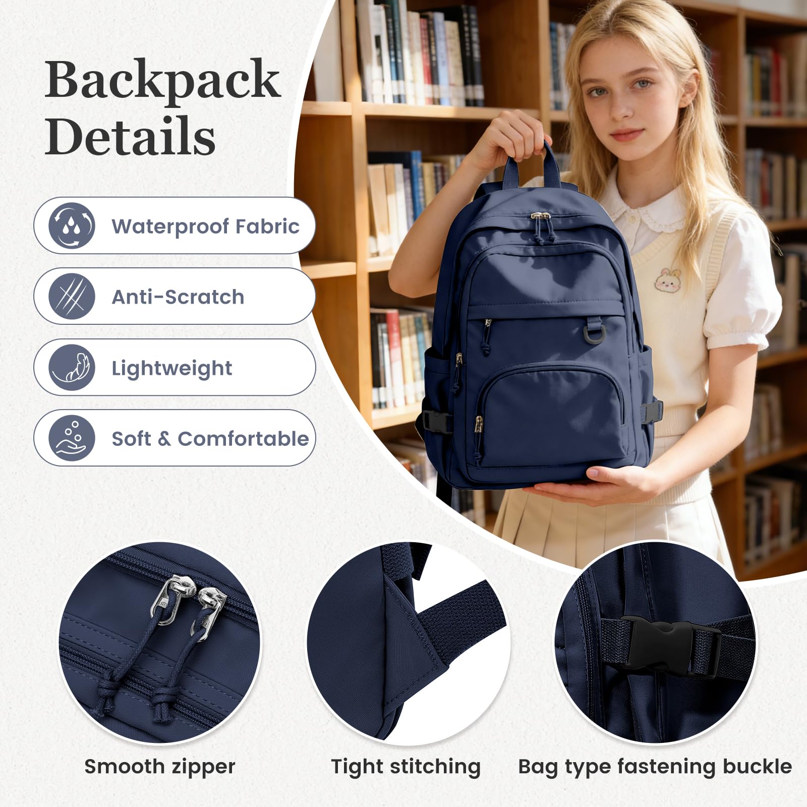 QUALITY FABRIC】Made of high quality waterproof nylon fabric, durable and easy to clean. Casual backpack with high quality SBS zippers, the two-way zipper is made of high quality metal, smooth to use and ensure long-lasting use.
