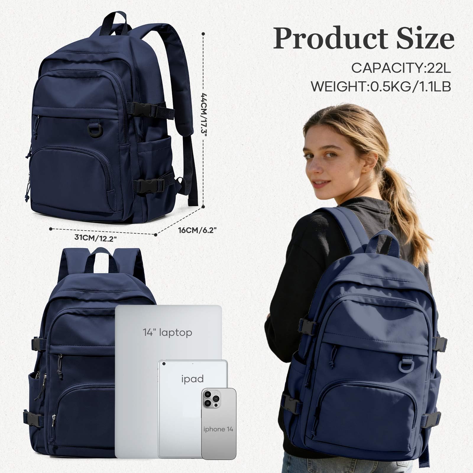 College Student Backpack Size】The backpack measures 13.38 “x18.5 ”x6.69" (W*H*D), Weight: 1.49LB.The backpack is available in six colors.