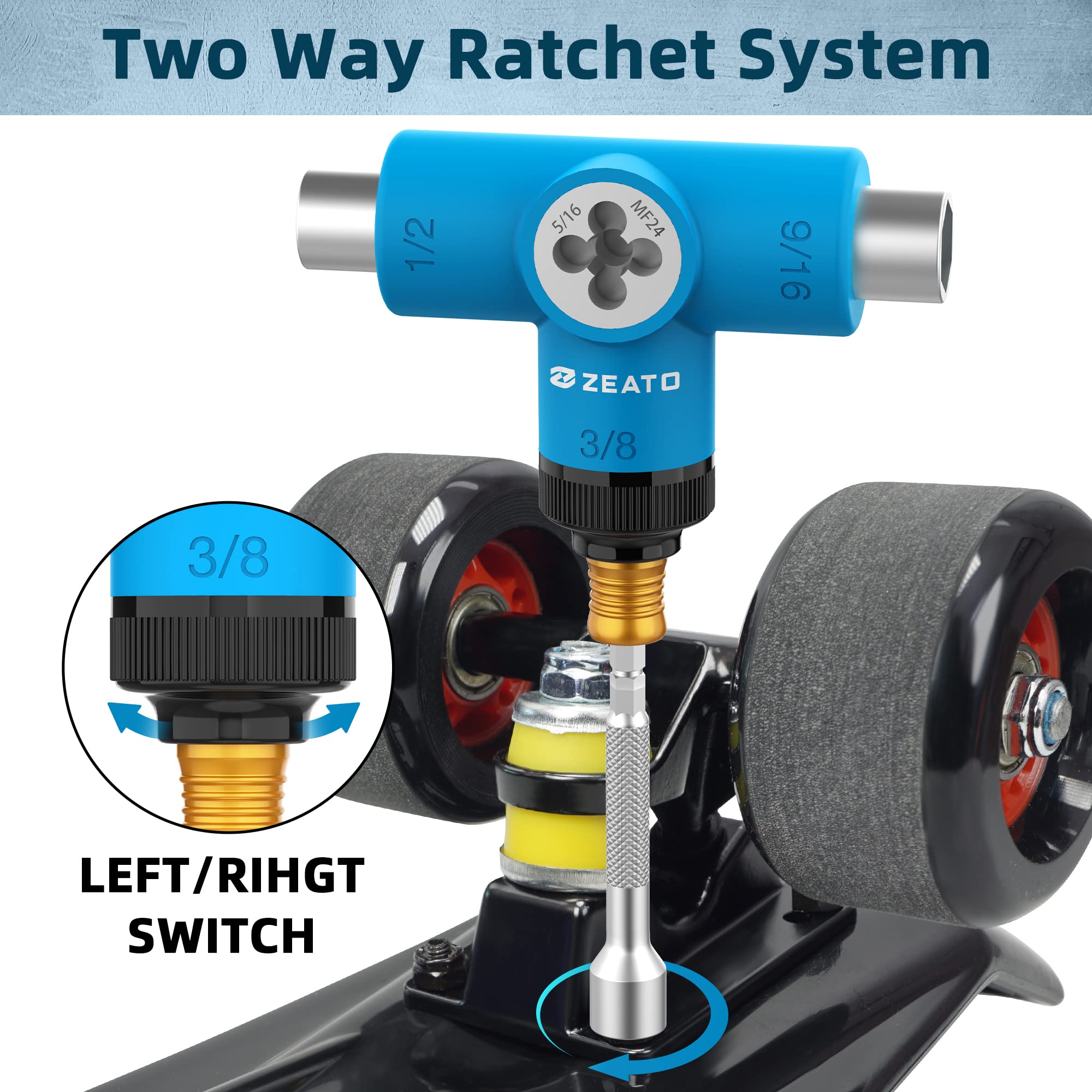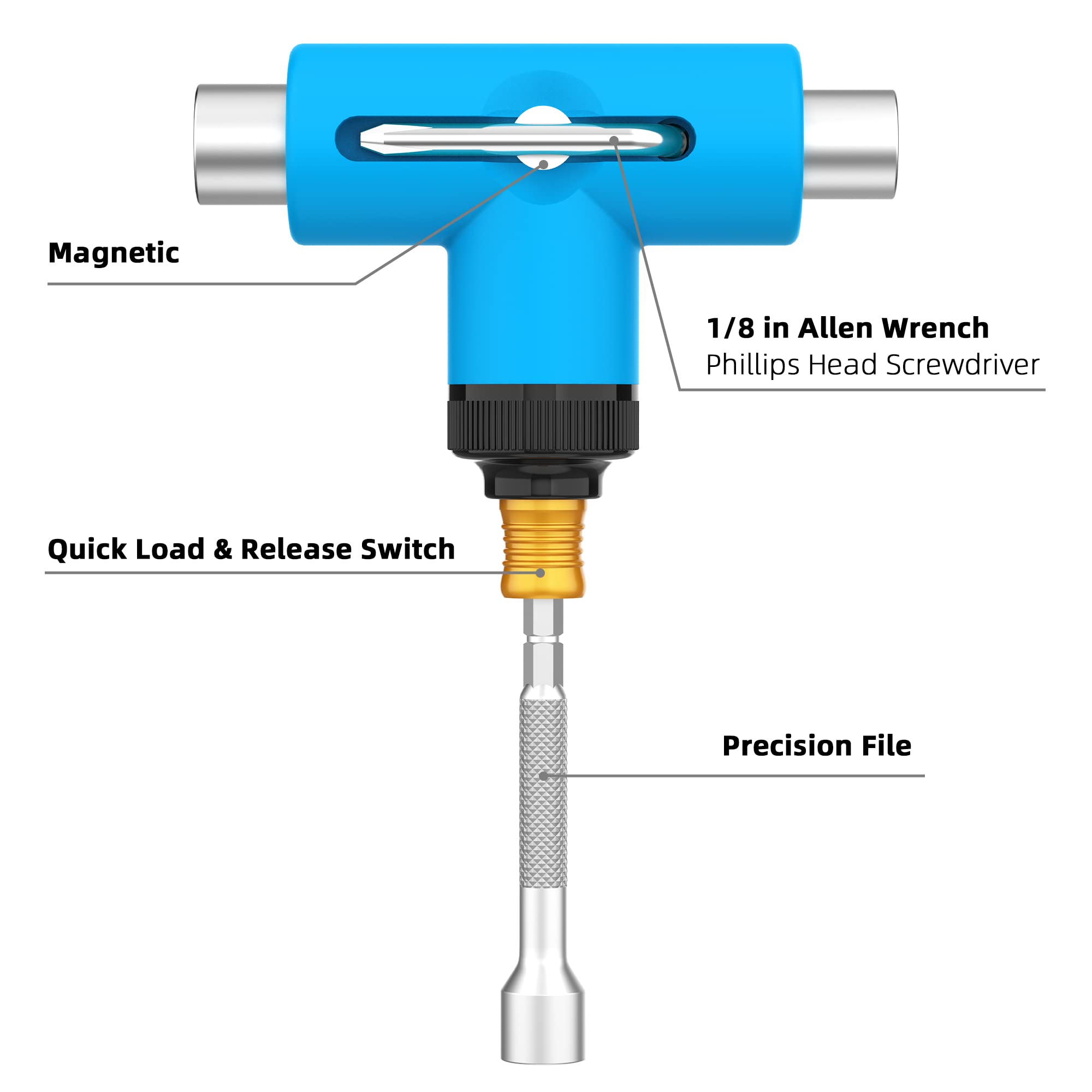 [Multi-functional Tool]: A multi functional skateboard T tool that allows you to adjust axle nuts, mounting hardware, and the kingpin nut on the top of the truck; which is perfect for completing skateboard assembly