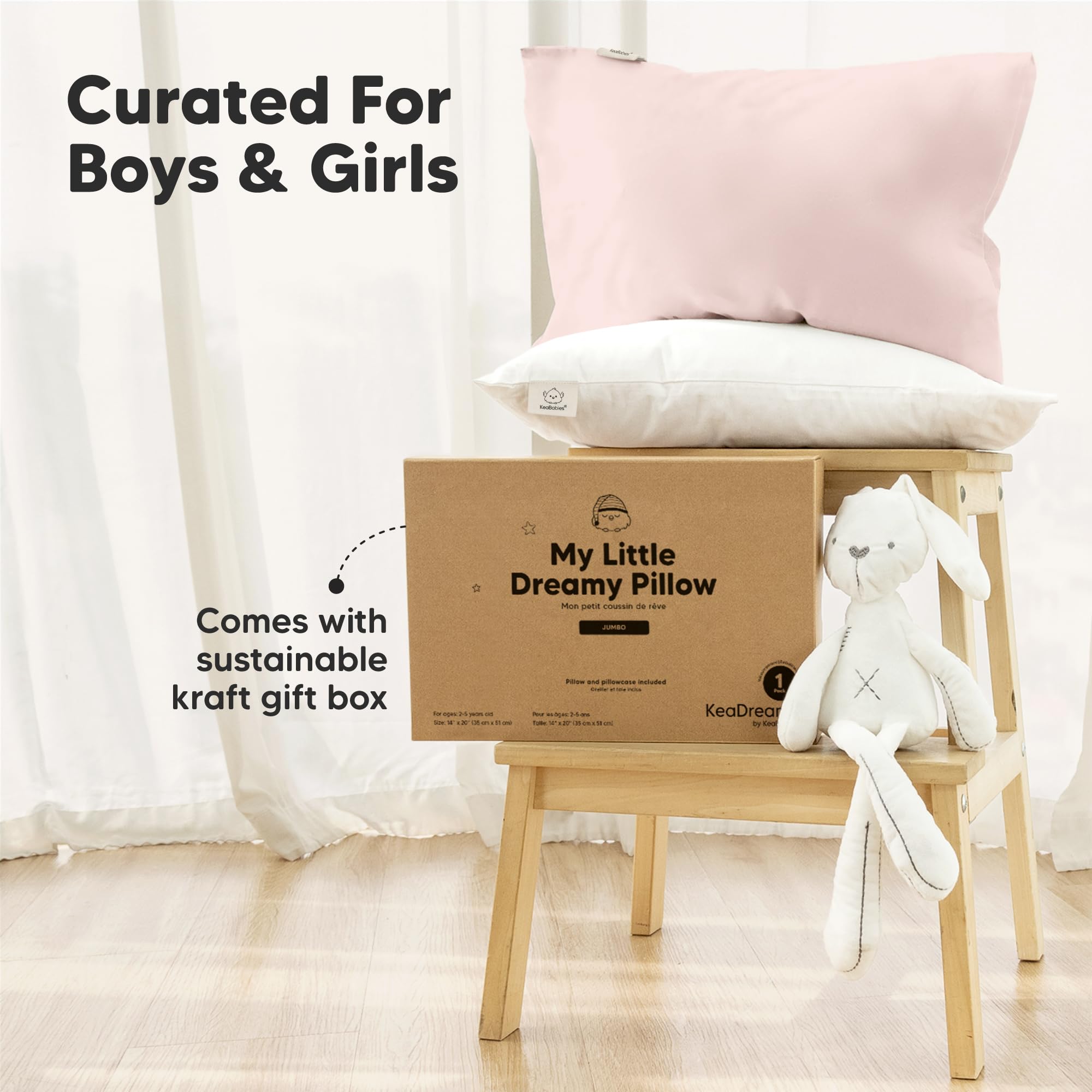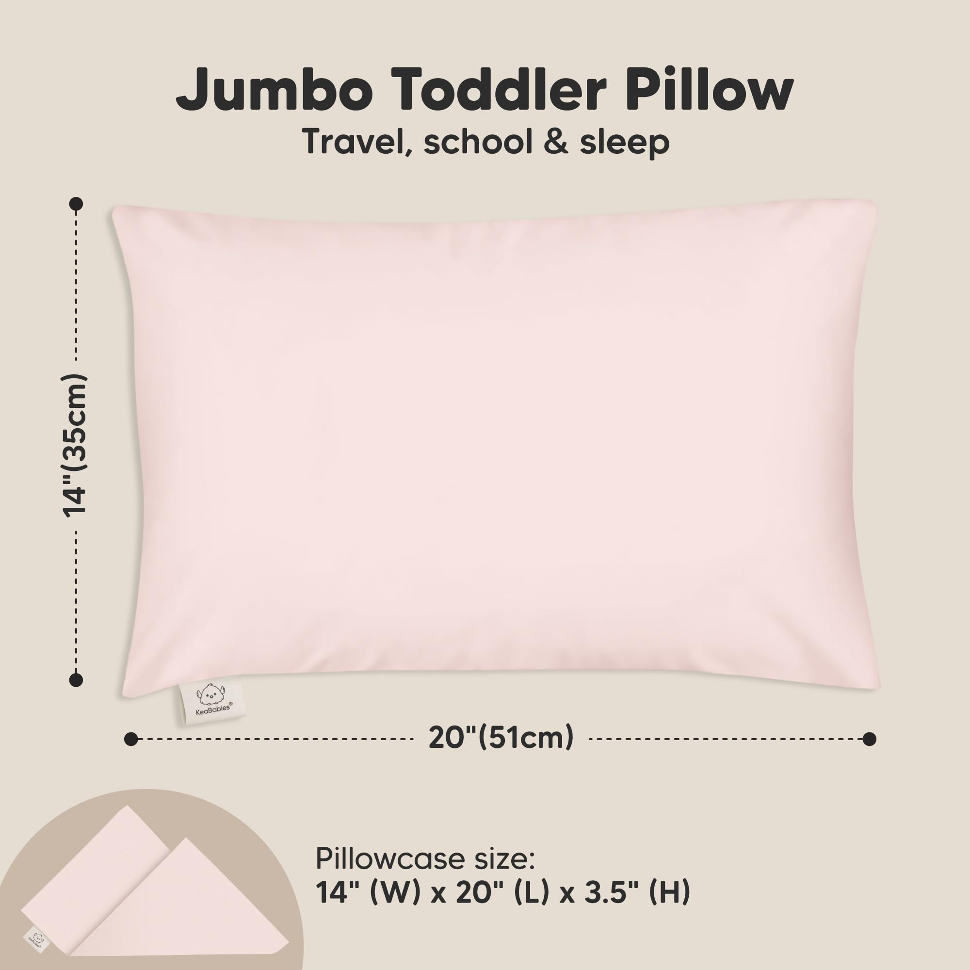 Ergonomically Designed – KeaBabies Jumbo Toddler Pillow 14x20, offers ergonomic support for healthy spinal alignment and all-night comfort. Note: Simply cold wash and tumble dry low to restore its fluffiness after opening from vacuum package.