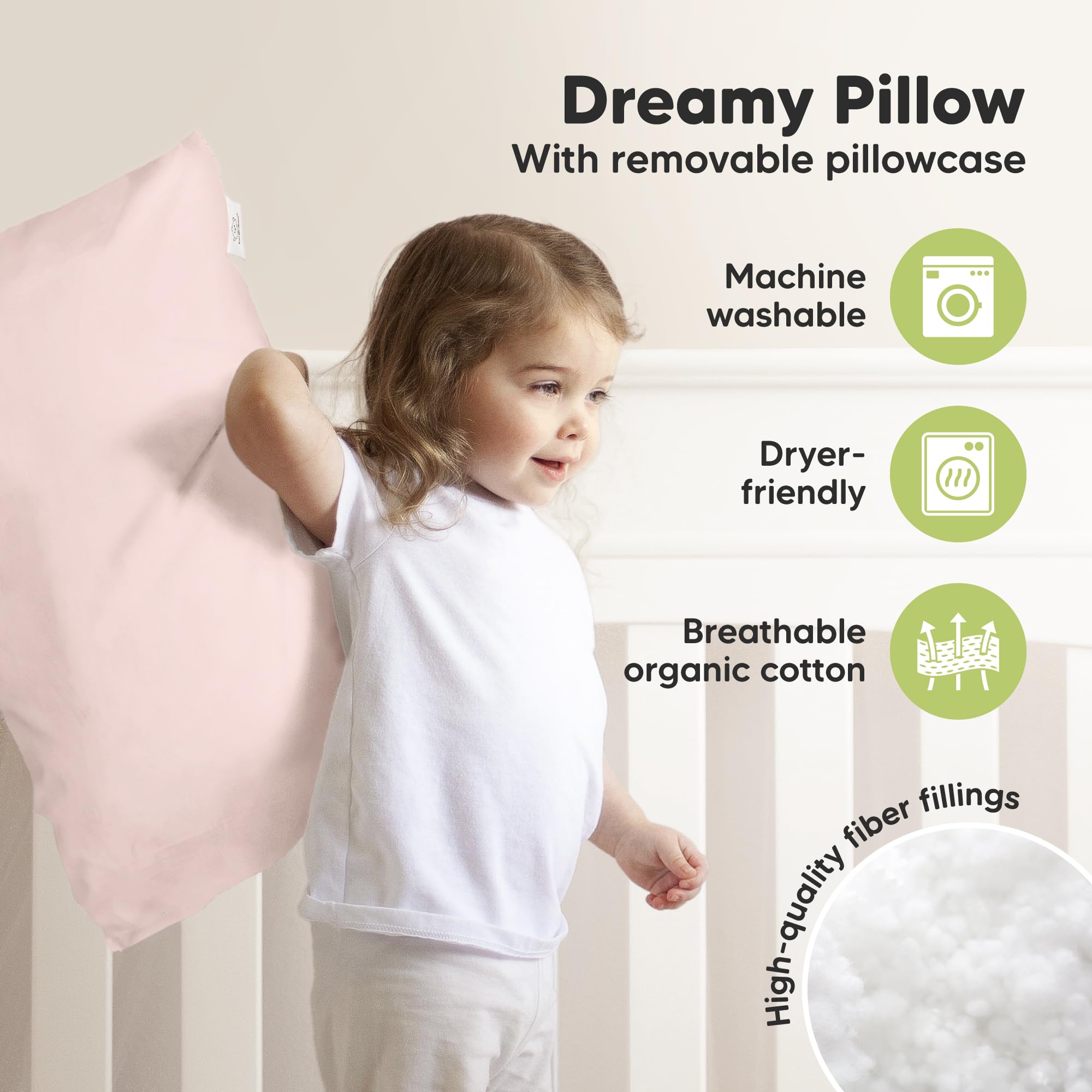Natural Cotton - Our toddler pillowcase and cover are made of OEKO-TEX 100 Standard and GOTS Certified CU 1042833 Organic Cotton. This soft & breathable toddler pillow for kids is the perfect kid pillows for sleeping and travel pillow for 2 year old.