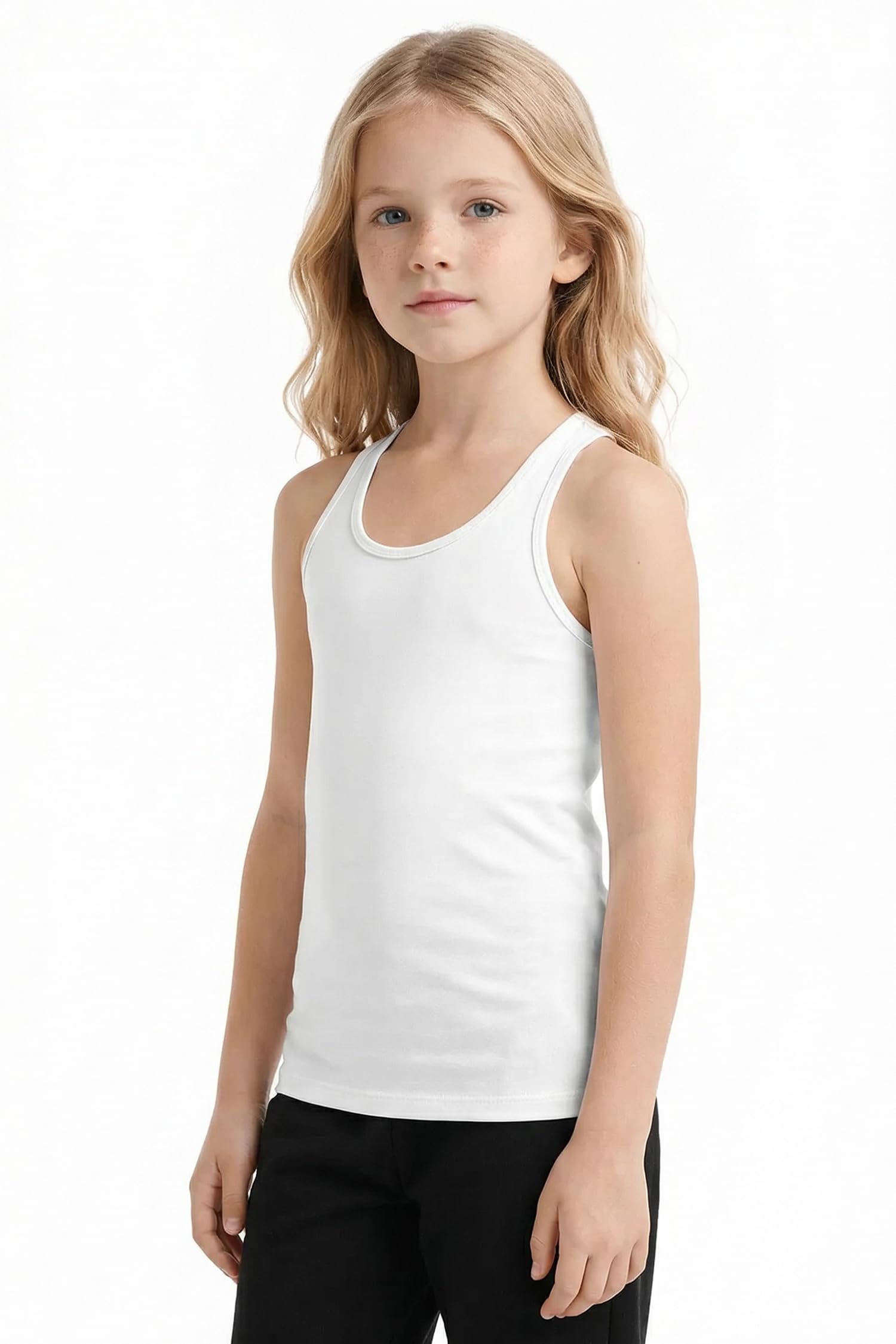 FASHION DESIGN - This affordable, high-quality racerback tank is a must-have fashion basic for stylish girls. With a classic crewneck, this versatile camisole can be paired with anything. The sleeveless design ensures that your kids’ arms won’t be restricted in any way. This slim fitting tank hugs your upper body and goes on your body like a second skin, which ensures that it doesn’t show when layered underneath other tops.