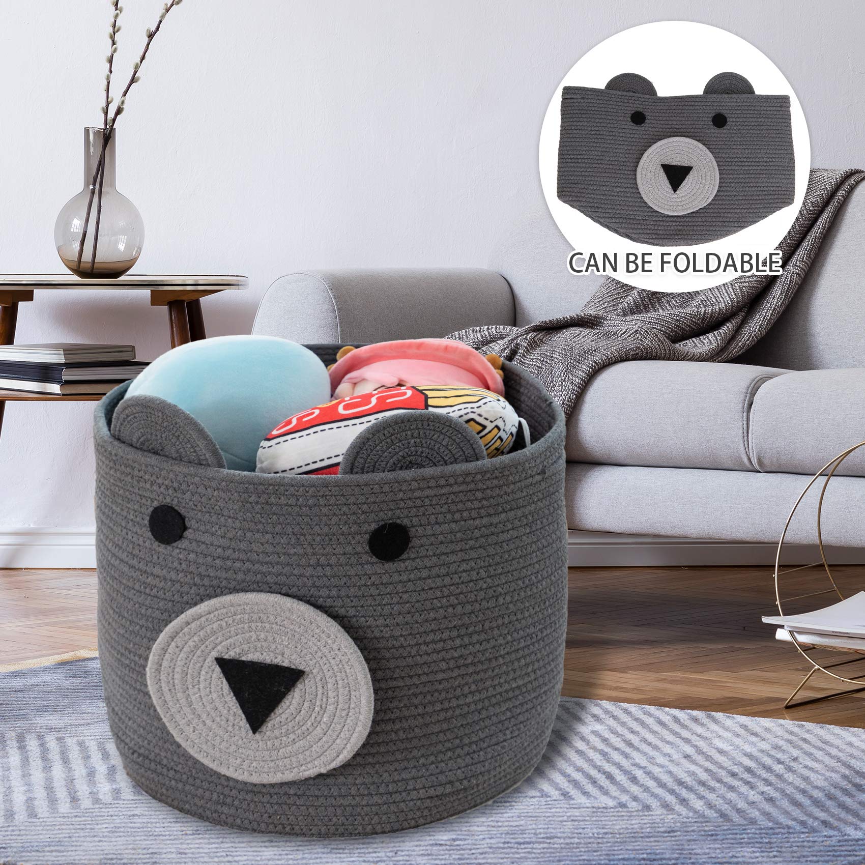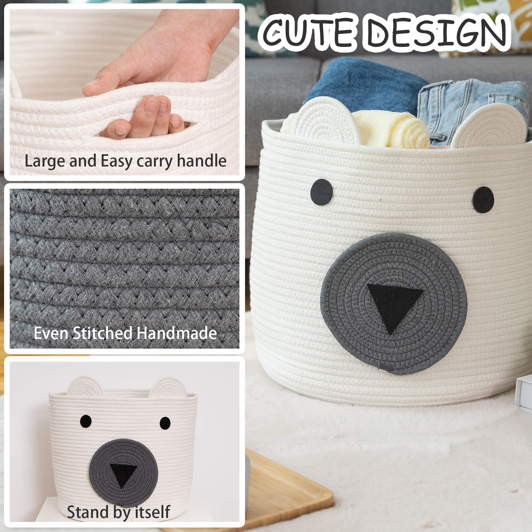 🐻 UNIQUE CARTOON DESIGN:Cute bear face design with excellent workmanship, makes the woven storage basket adds sweet flair to your home.Neutral color and cute bear face design of the pet basket is delicate and lovely, which can be a good decoration of your space.