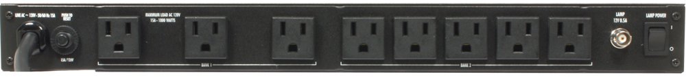 Retractable LED rack lights with on/off/dimmer control Isolated outlet banks to minimize inter-component