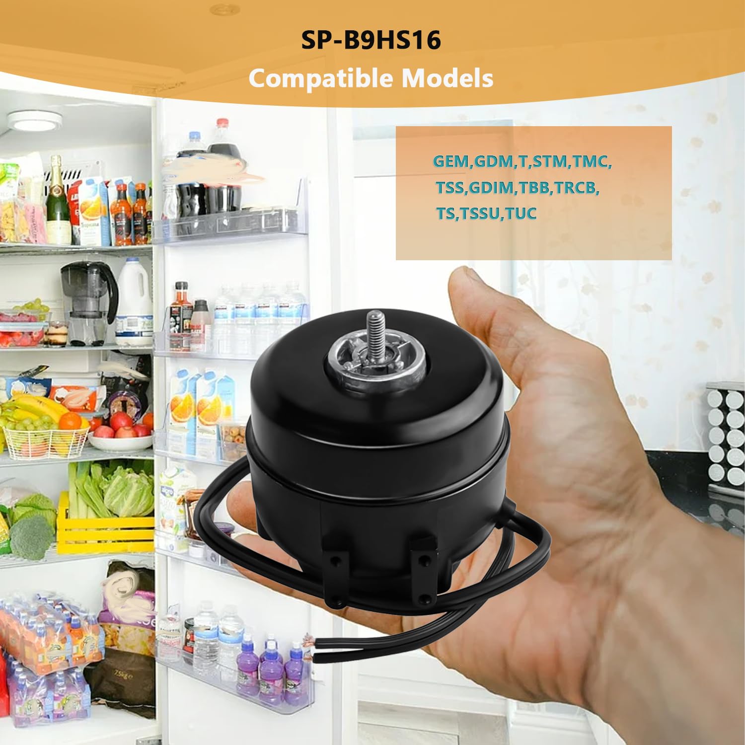 Compatibility:SP-B9HS16 condenser fan motor replacement model:800402 motor, Fits Models GDM,GEM, TSS,STM, TMC,etc;9 watt 115v fan motor, 9 watt condenser fan motor,