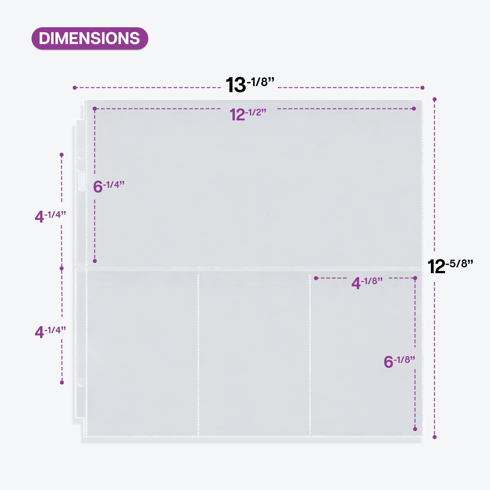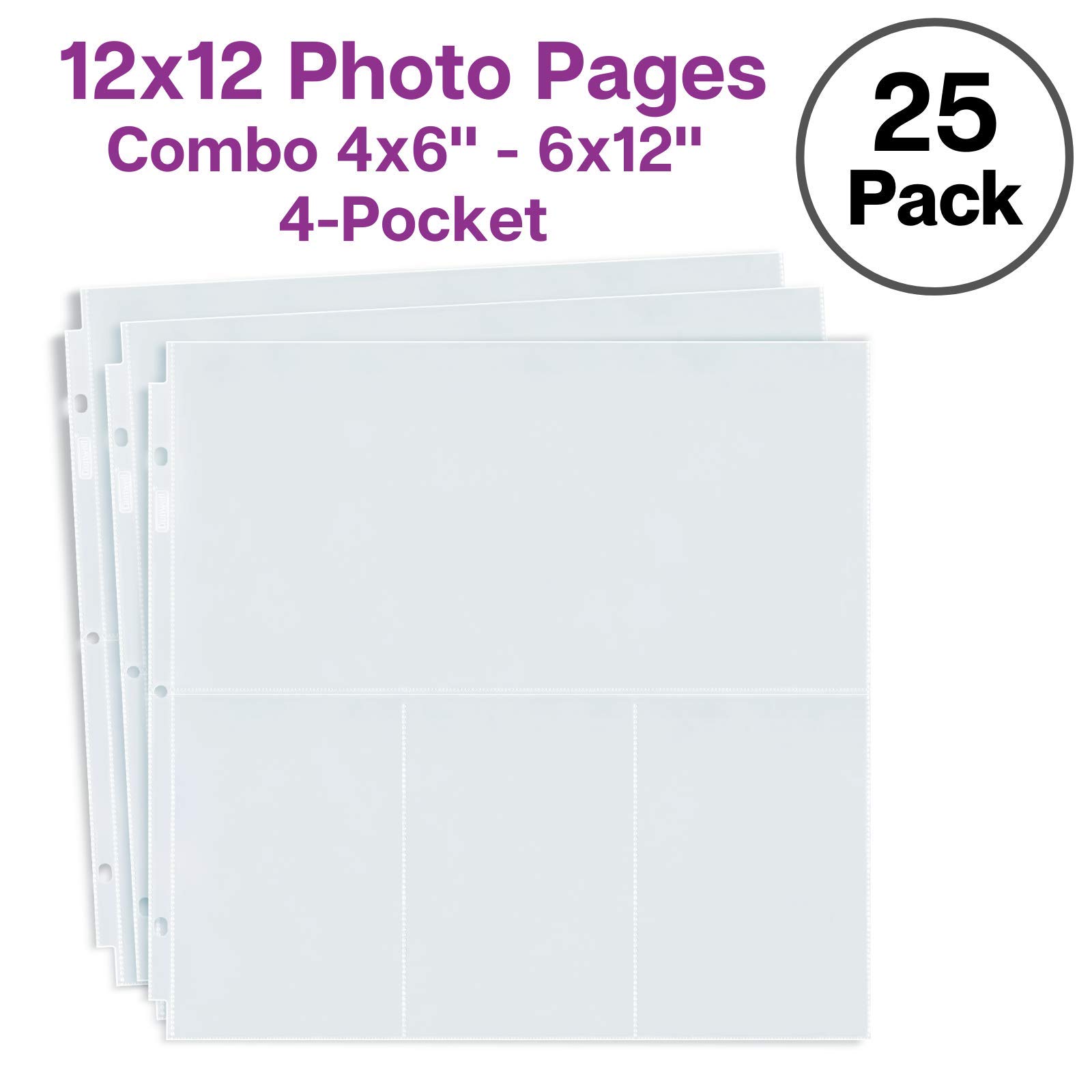 4x6" Photo Pages (Combo Format) for 12x12 Albums: Crystal clear 12x12 page protectors with 4 top-loading pockets: 3 vertical 4x6", 1 horizontal 6x12, Use as 12x12 scrapbooking sheet protectors.