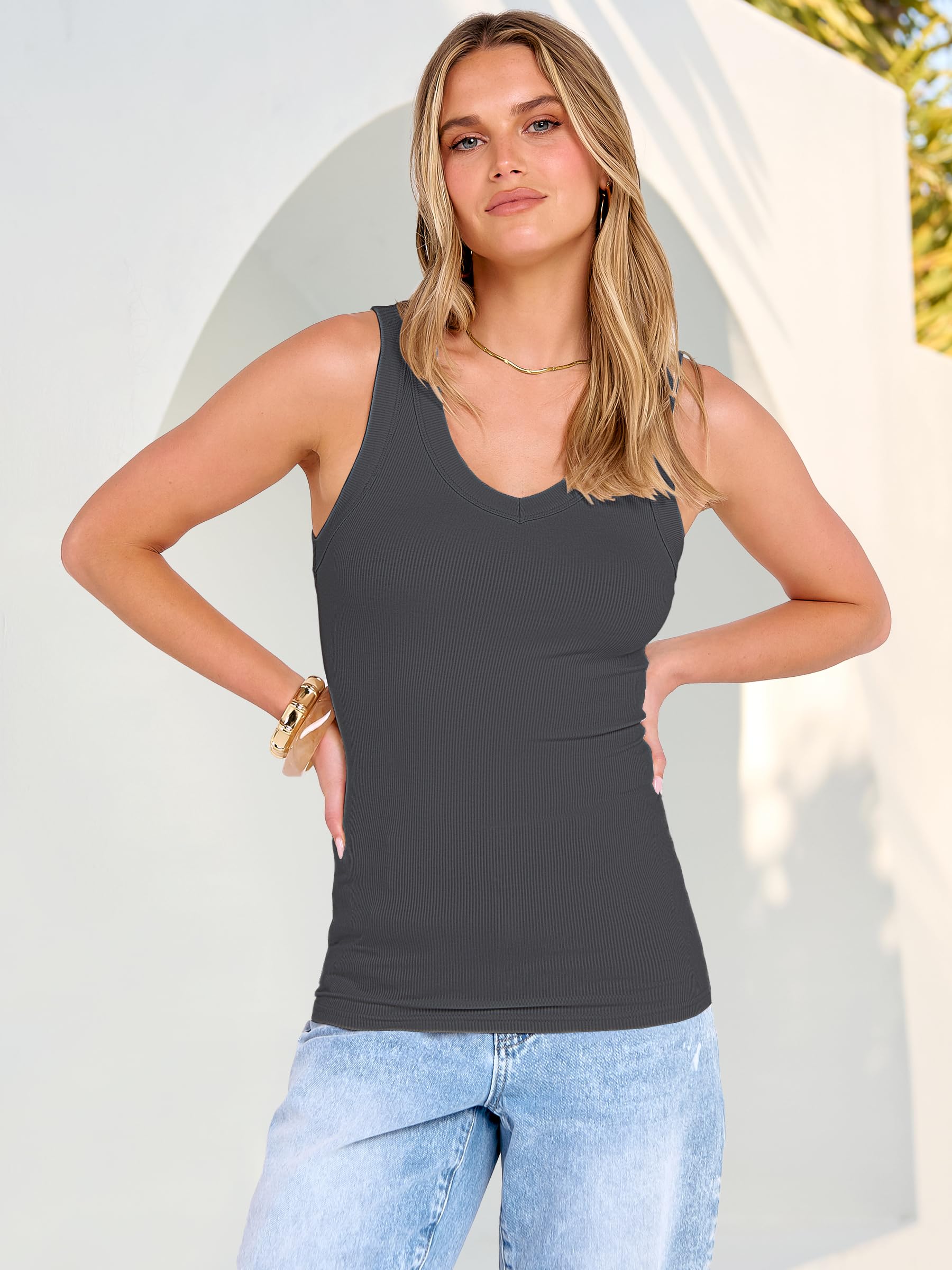 Features - Women's summer tank tops, v neck, short sleeve, ribbed, knitted, slim fit, skinny style. This women's tanks basic tee shirt perfect for daily, casual wear, also can pair with for work, office or athletic wear.