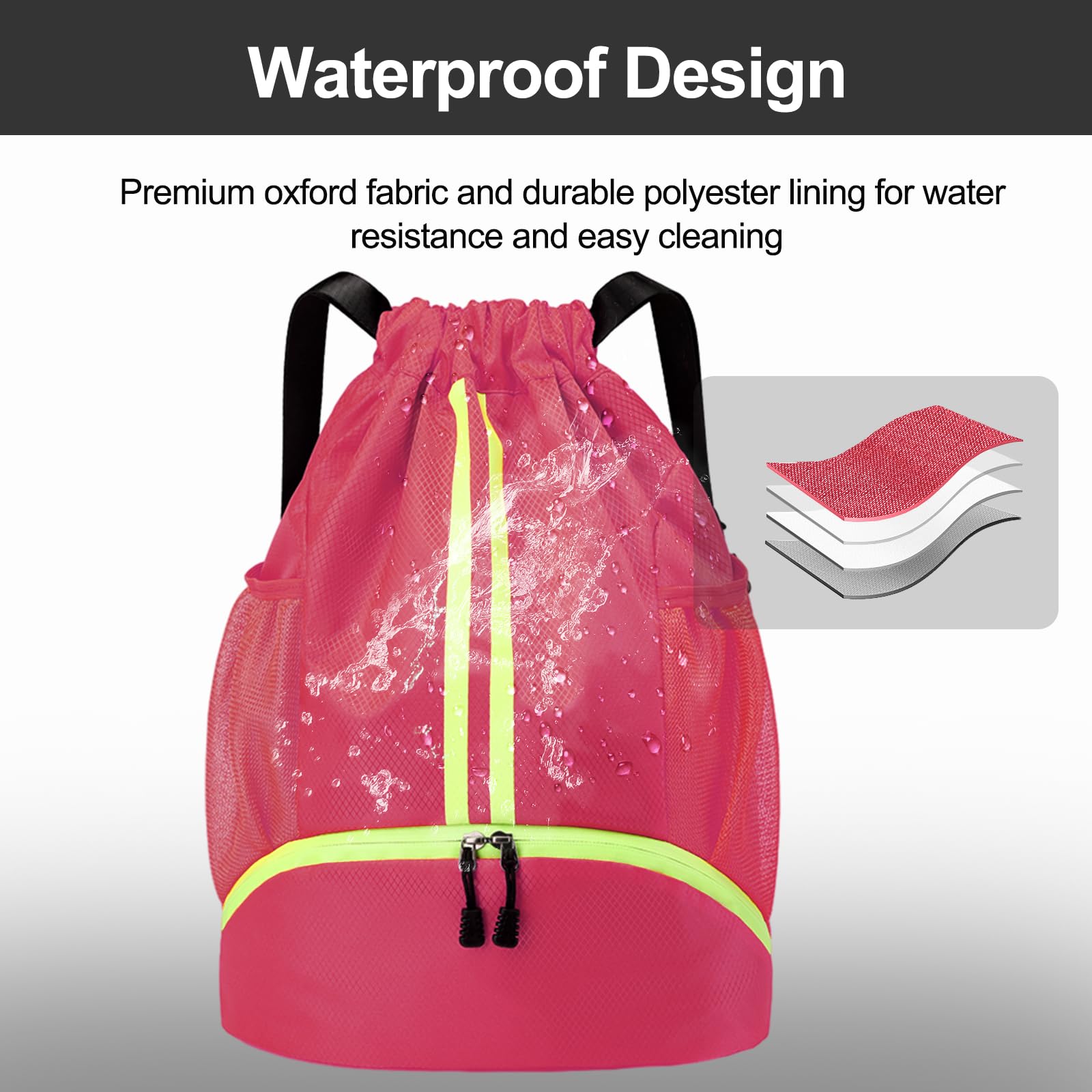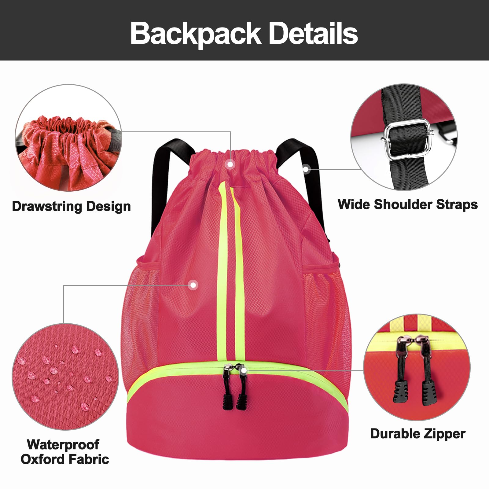 Water-Proof Material: The Hoedia Drawstring Backpack is perfect for gym and swim enthusiasts as it is made of durable water-resistant oxford cloth, keeping your belongings safe and dry