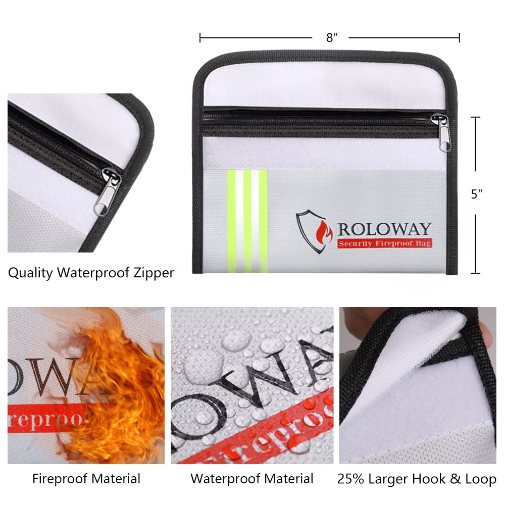 [PORTABLE SIZE FOR VALUABLES - Passport, Certificate, Cash, Keys & Jewelry] : Have many small size valuables? Do not know how to stow them? With size of 5 x 8 inches, our Fireproof Wallet Bags are SPECIFICALLY designed to store your passport, cash, letters, precious photos, certificate, jewelry, keys, cards and more. With the PORTABLE design, we hope you could keep your important things WELL PREPARED & PROTECTED anytime and anywhere.