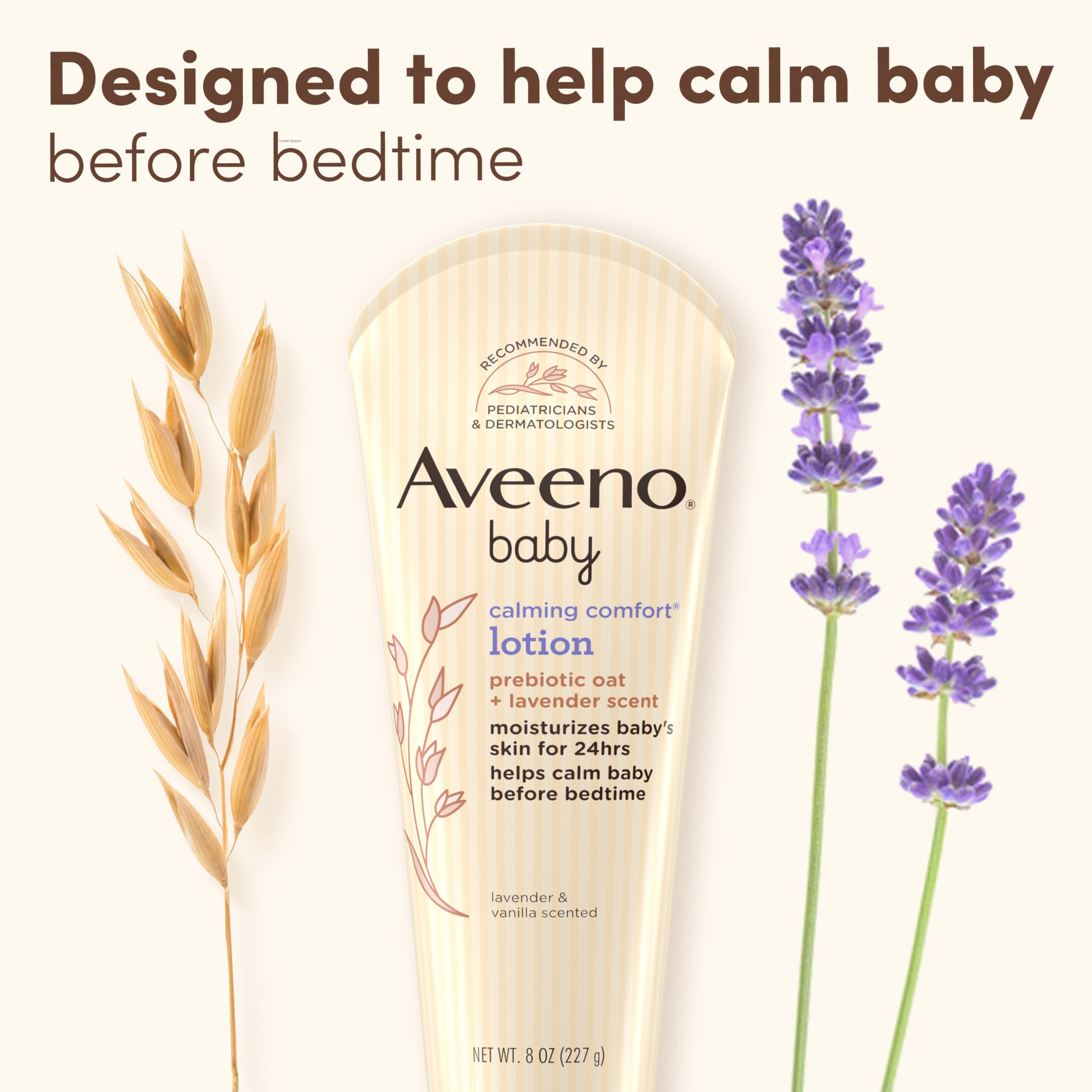 BABY BEDTIME ROUTINE: Calming lavender baby lotion can be used as part of a gentle massage before bedtime. Infant massage is clinically shown to relax babies & improve their overall well-being. Aveeno is recommended by pediatricians & dermatologists