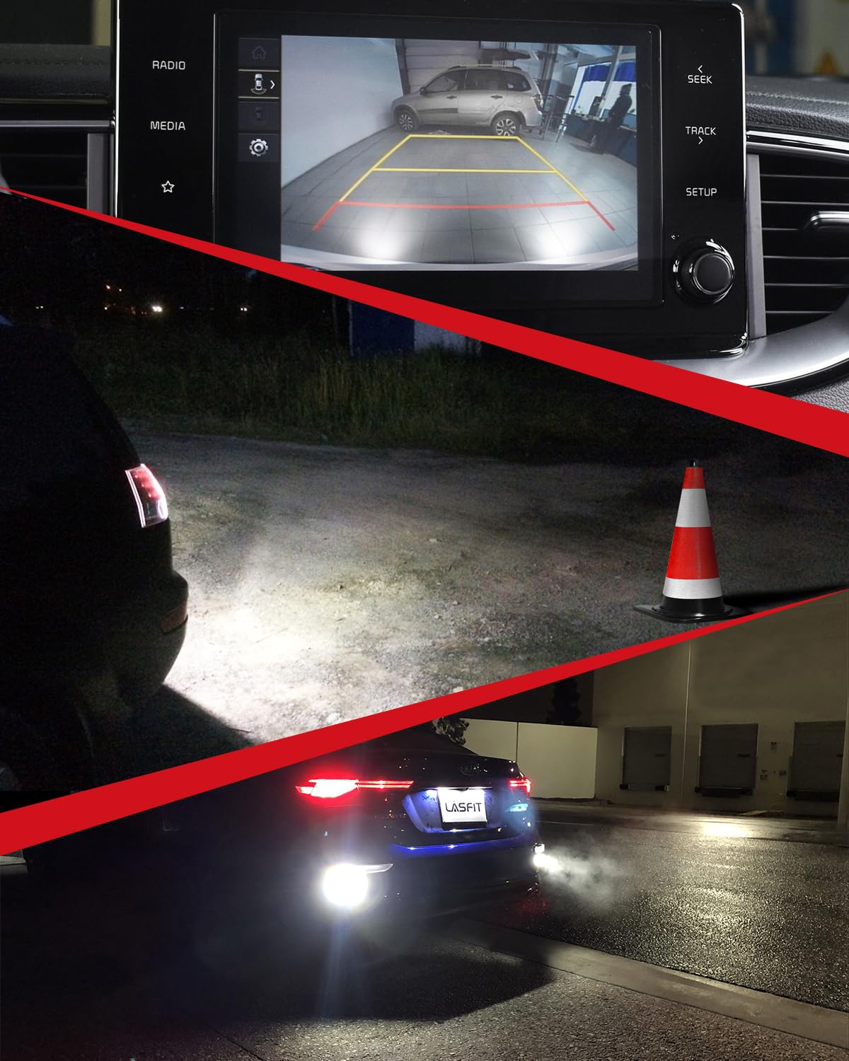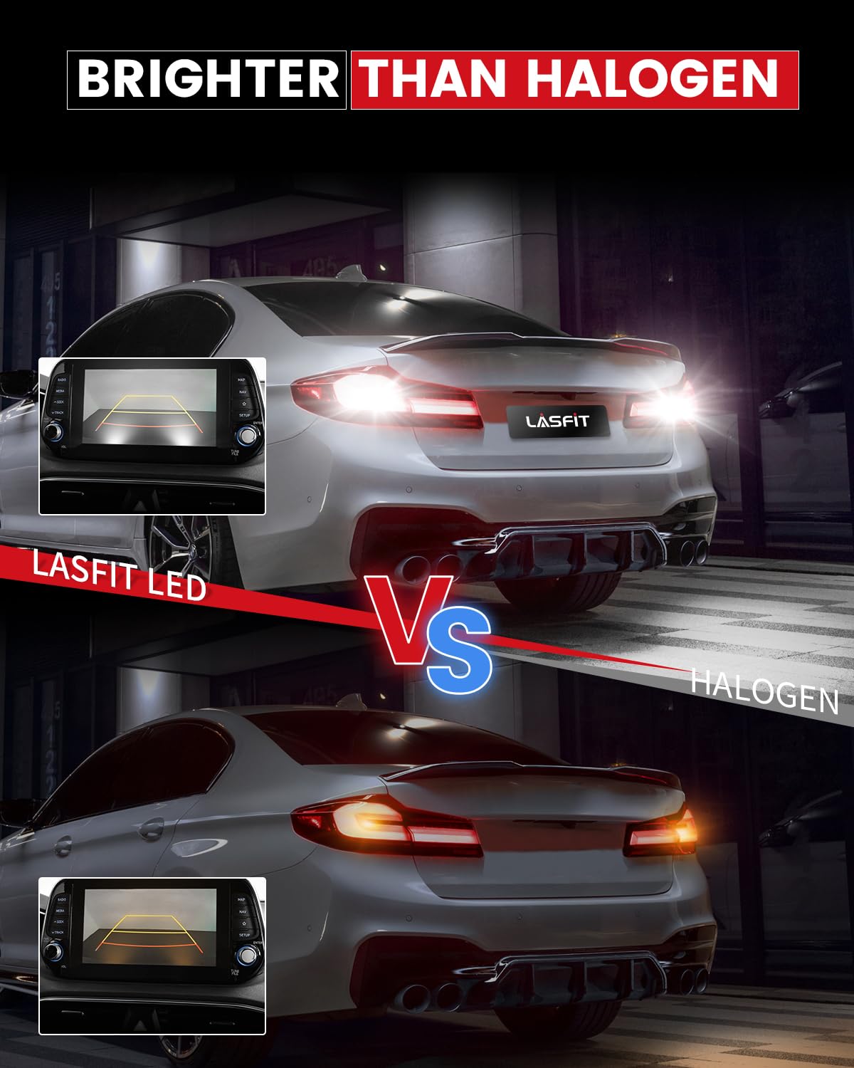 【Super Bright】LASFIT 7443 LED bulbs utilize 20 high-efficiency 3030 SMD LED chips, achieving full 360-degree illumination, higher brightness than halogen, providing you further and wider visibility to ensure safe driving at night.