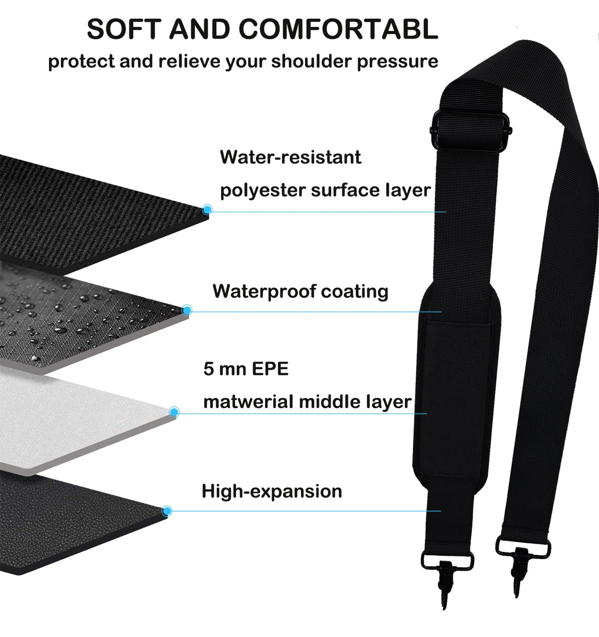 Adjustable Length: extra long to help cover your entire shoulder. slide its adjustable clip up to shorten the strap, or down for more slack.adjust from 31.5" to 55"(included 2 metal hooks), the easy adjustment in length allows for the perfect fit.