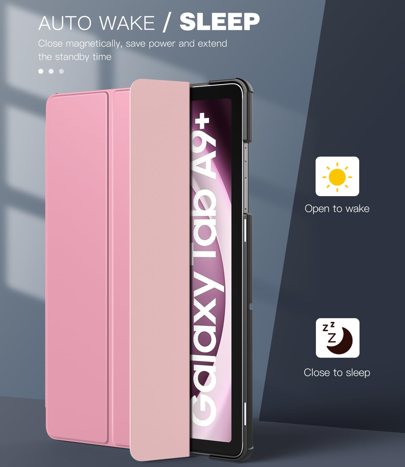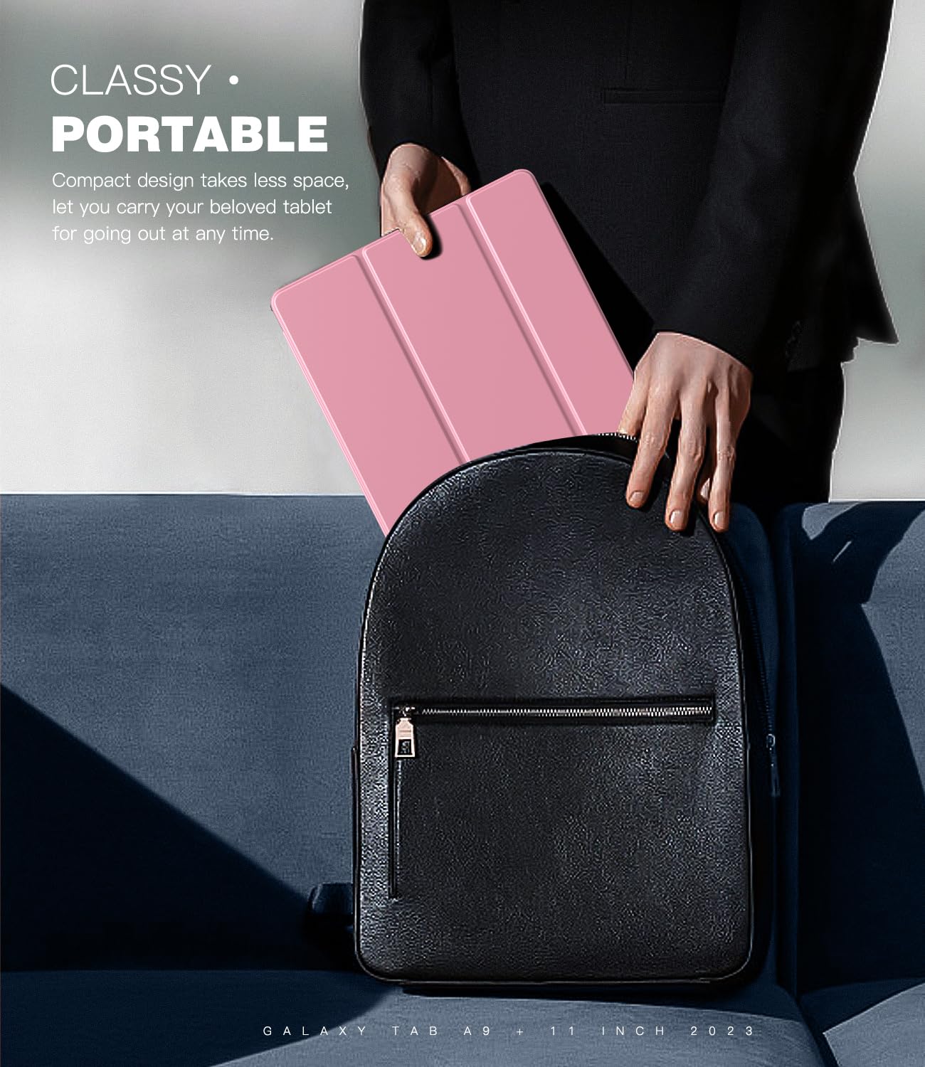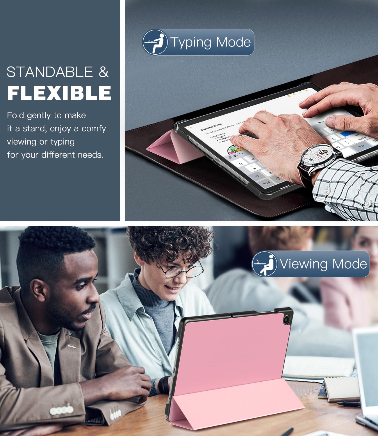 Adjustable Stand Angles: The top of this Galaxy Tab A9 Plus Case folds back to make a stand, which provides a sturdy stand position for both viewing and typing. Free your hands when watching, reading, or writing, a good way to alleviate neck strain