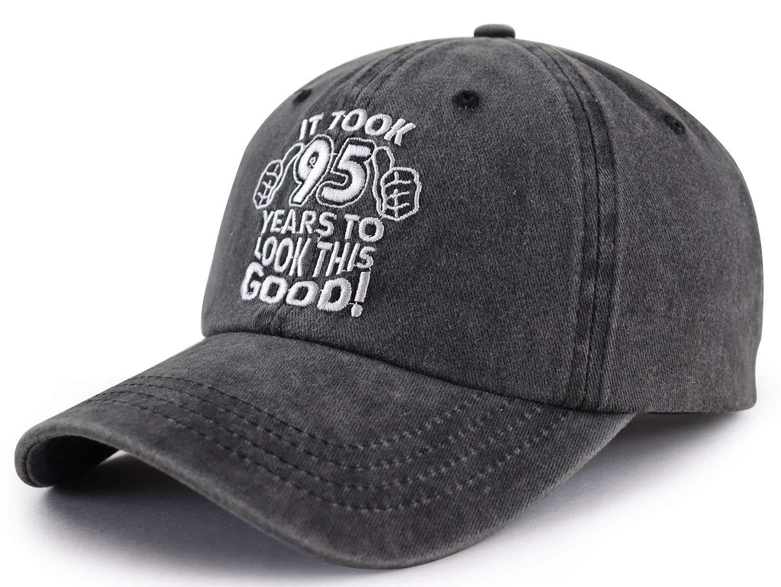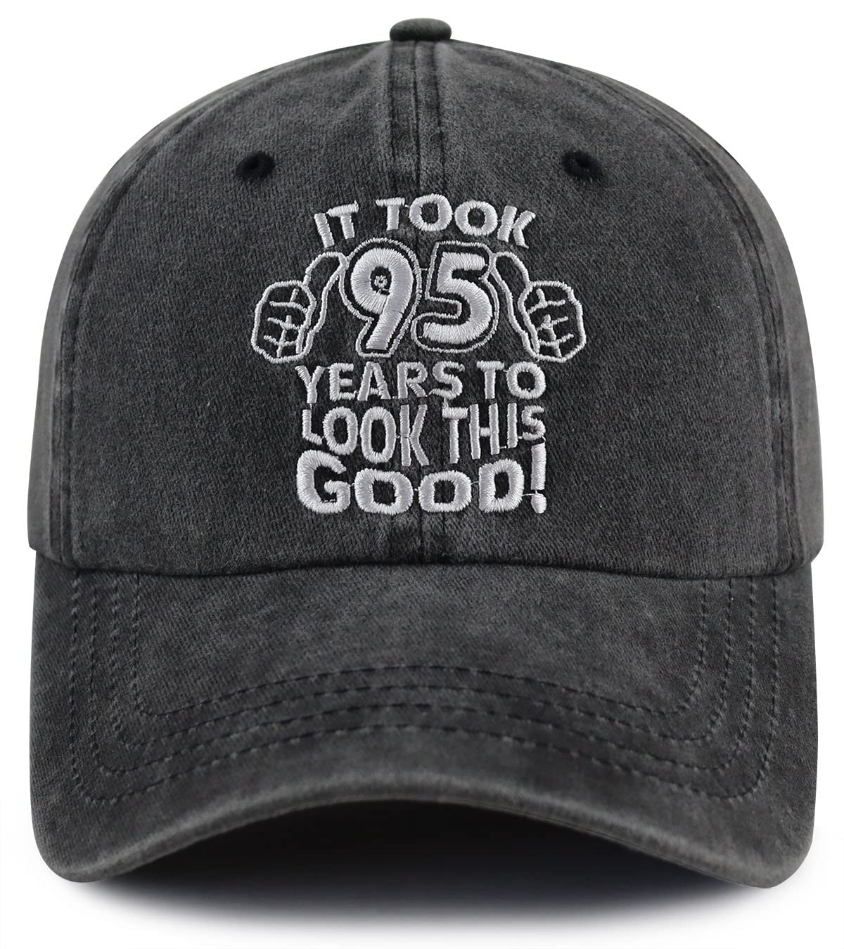 β Adjustable Design: Our 95th Anniversary Gifts for Him Her, It Took 95 Years to Look This Good Womens Mens Hats Circumference: 56-62cm/22inches-24inches, Hat Height: 9cm/3.54 Inches, Brim: 7 Cm/2.77 Inches. Adjustable Metal Buckle Back Closure, Great Fit for All Head Sizes. 6 Panel Structure, 6 Embroidered Eyelets, Breathing Hole Design Increases the Permeability of the Hat.