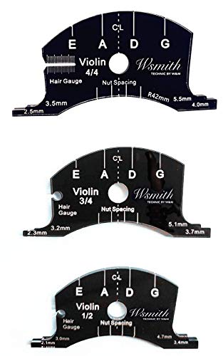Specifications: Material:Carbon Fiber Color:Black 4/4 Violin Size:7x3.3cm(L x W) 3/4 Violin Size:6.8x3.3cm(L x W) 1/2 Violin Size:6.3x3cm(L x W) Function: fingerboard radian measurement template violin string distance measurement scale Note: The measurement allowed error is +/- 1-3cm. Package: 1 x Violin Fingerboard Template