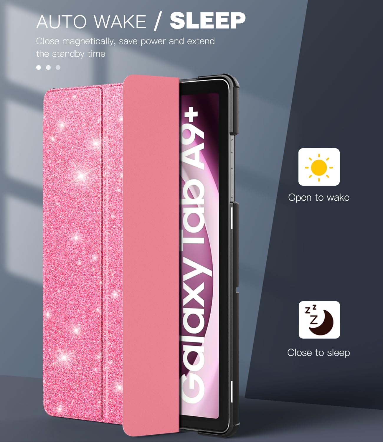 Adjustable Stand Angles: The top of this Galaxy Tab A9 Plus Case folds back to make a stand, which provides a sturdy stand position for both viewing and typing. Free your hands when watching, reading, or writing, a good way to alleviate neck strain