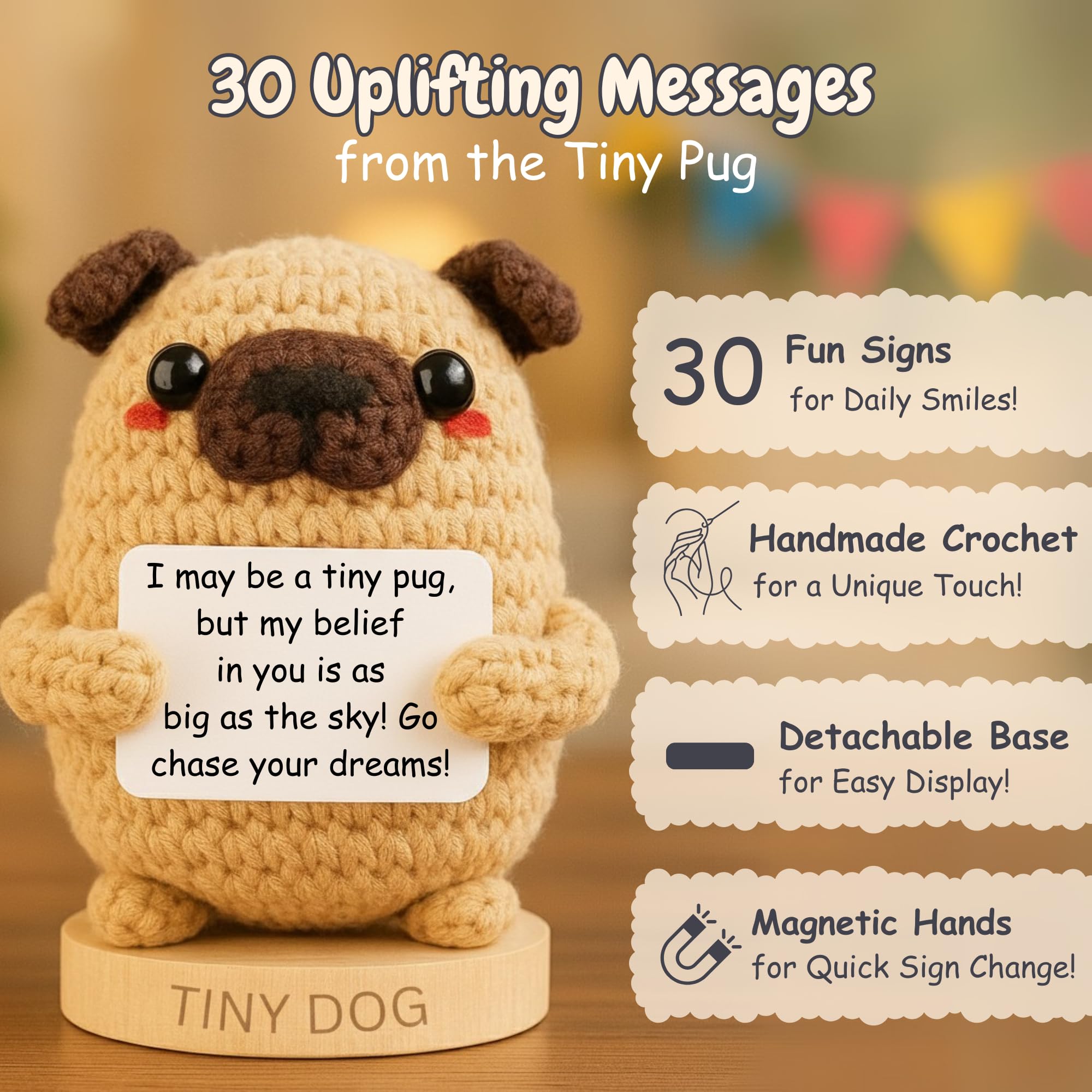 π Pawsitive and Uplifting - The Pawsitive Pug comes with 30 swappable daily affirmation signs featuring heartwarming and fun messages; perfect for spreading joy and positivity; a daily reminder of the love and happiness pugs bring